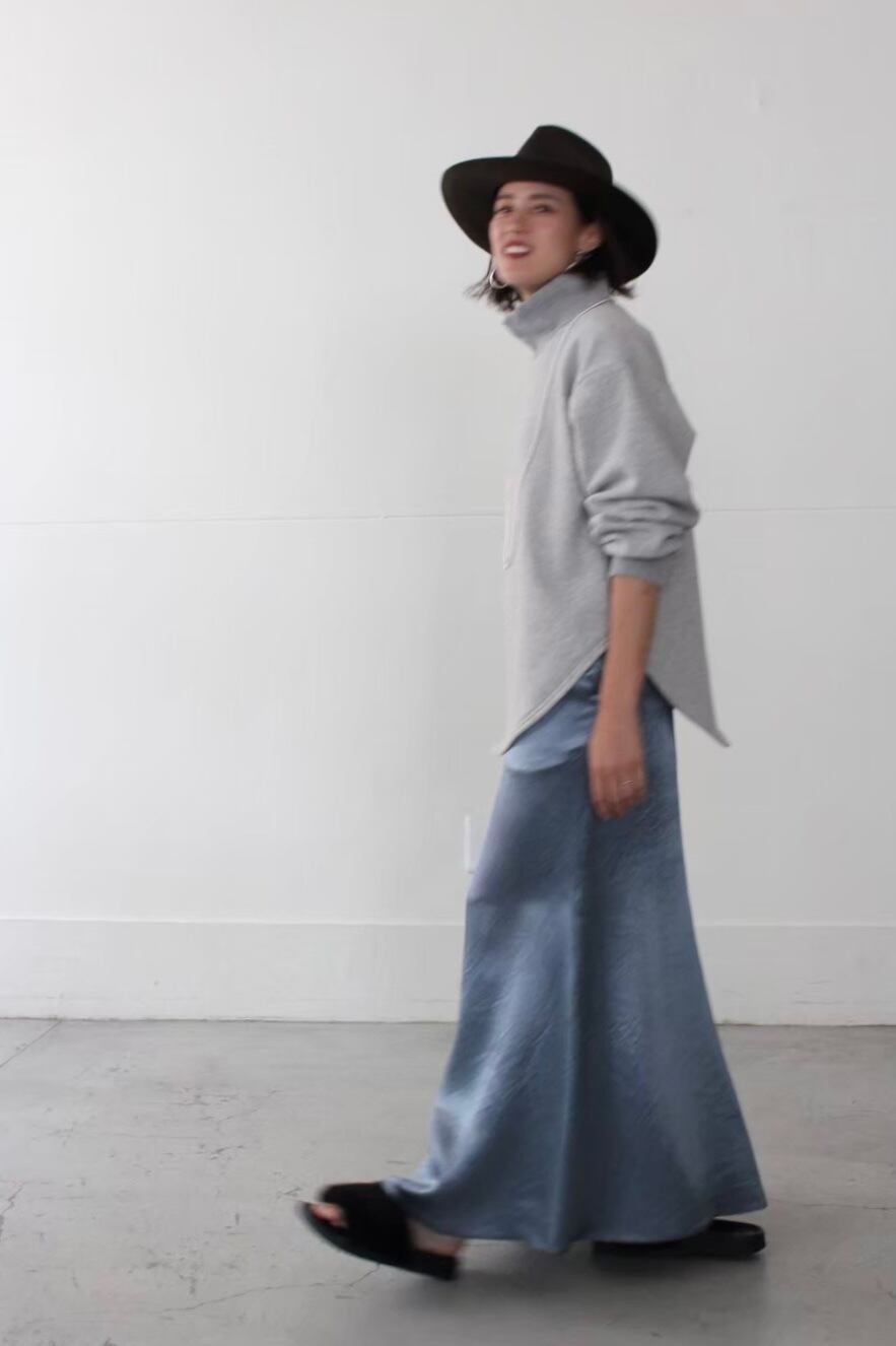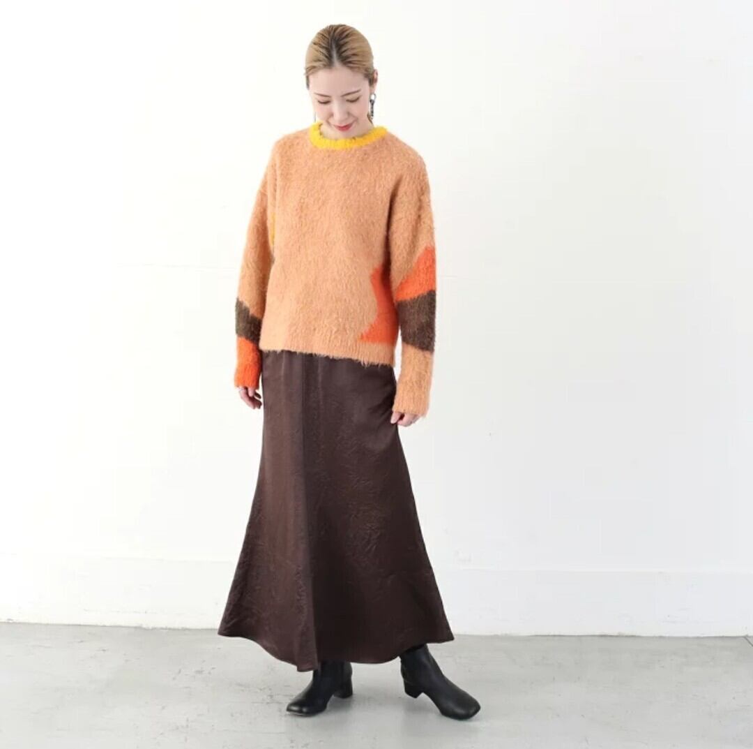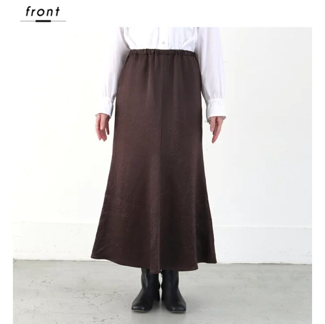 光沢もあり、主張が強そうに見えますが、意外とカジュアルから綺麗めまでどんなスタイリングにもマッチするスカートです。