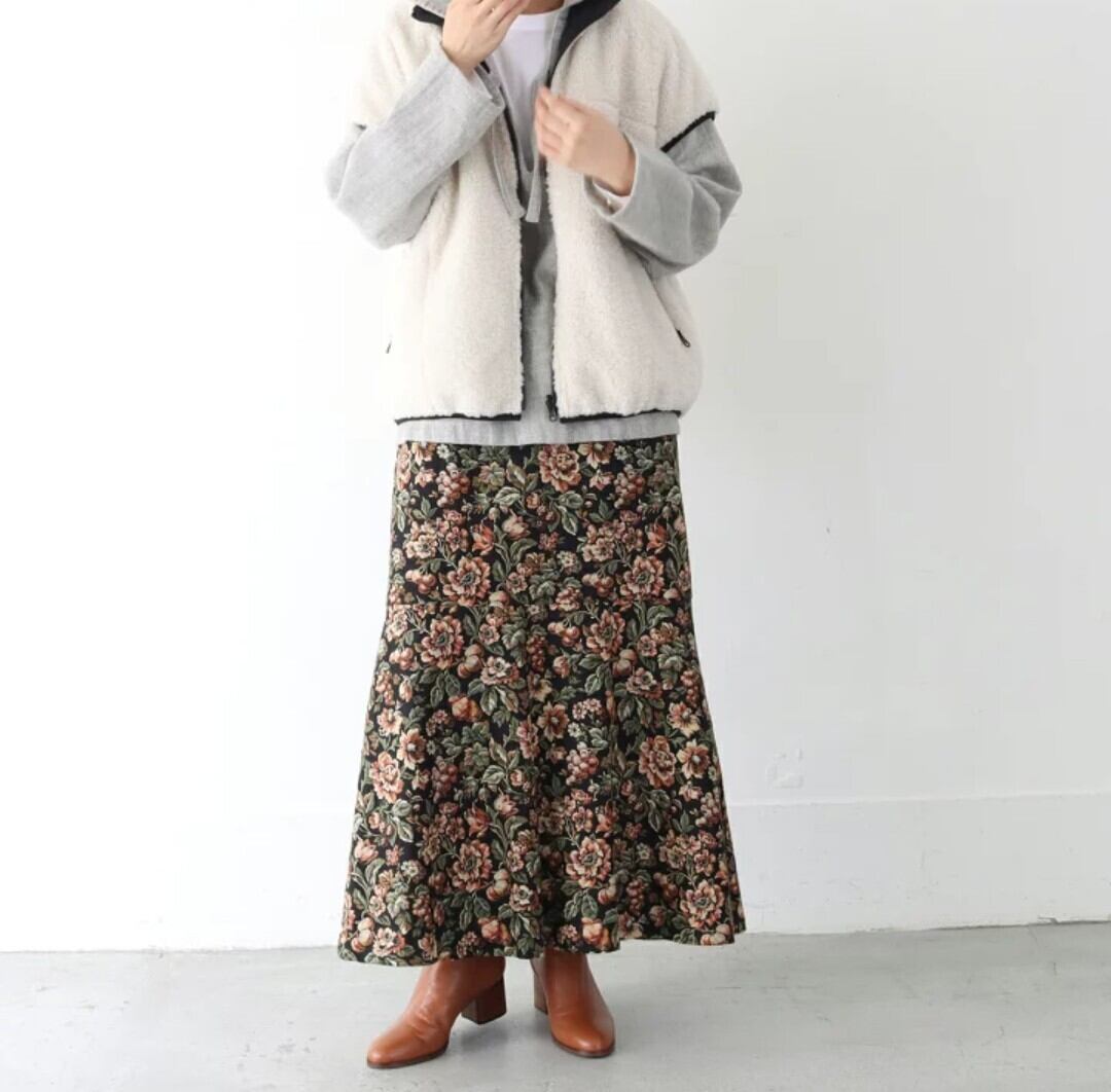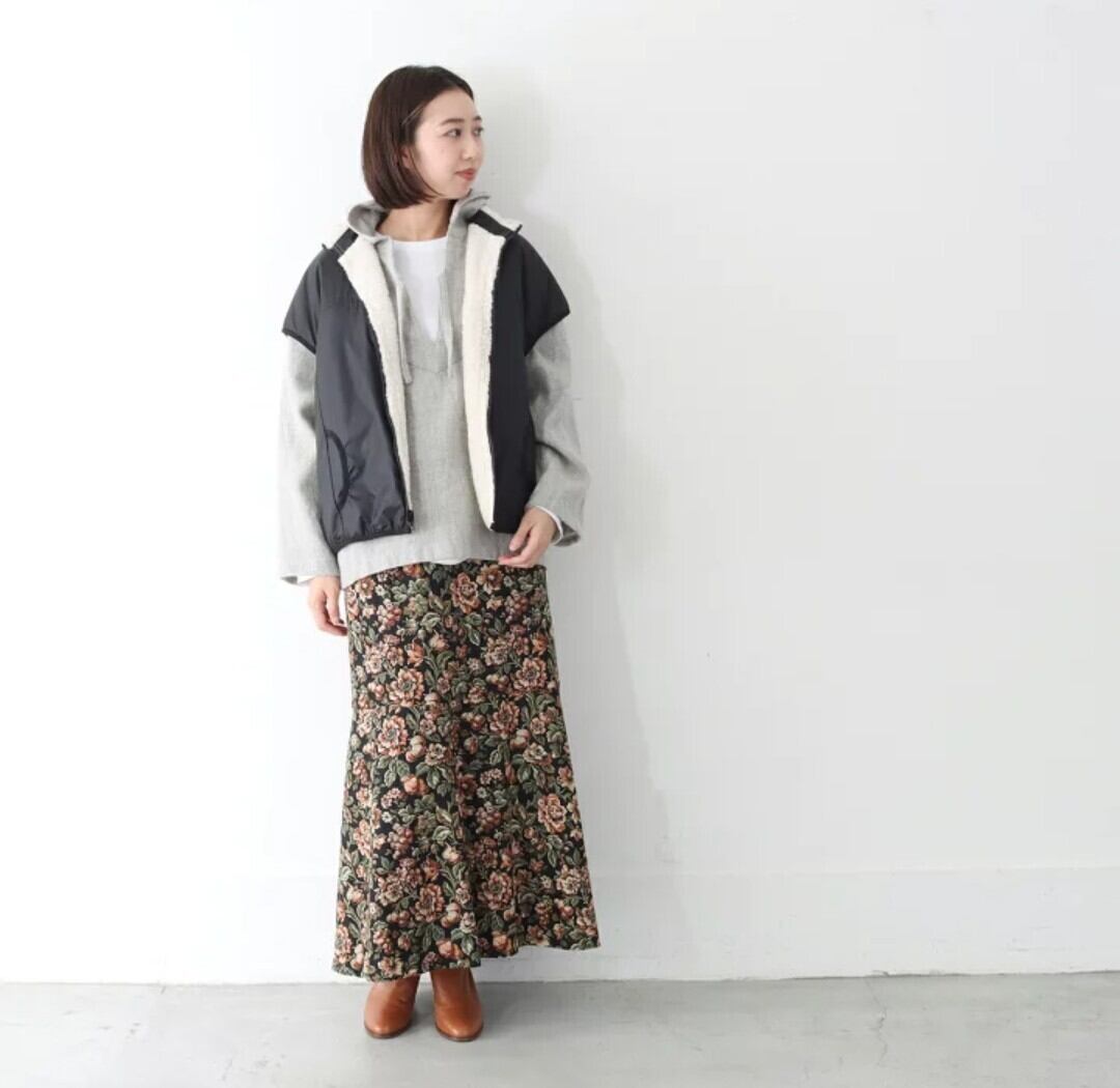裾が丸くなった丸みのあるシルエットであり、ワンピースやスカートの女性らしいアイテムとのスタイリングがオススメです。