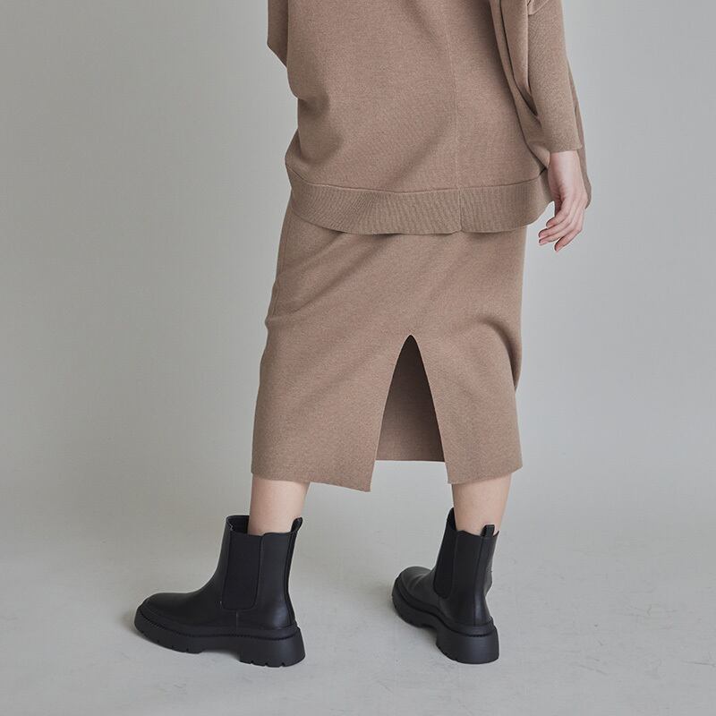 すっきりとしたタイトなシルエットが女性らしいニットタイトスカート。