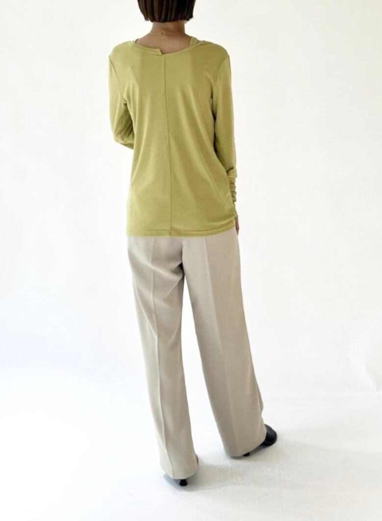 伸縮性のあるTR素材のフライス生地を使用したカットソートップスです。