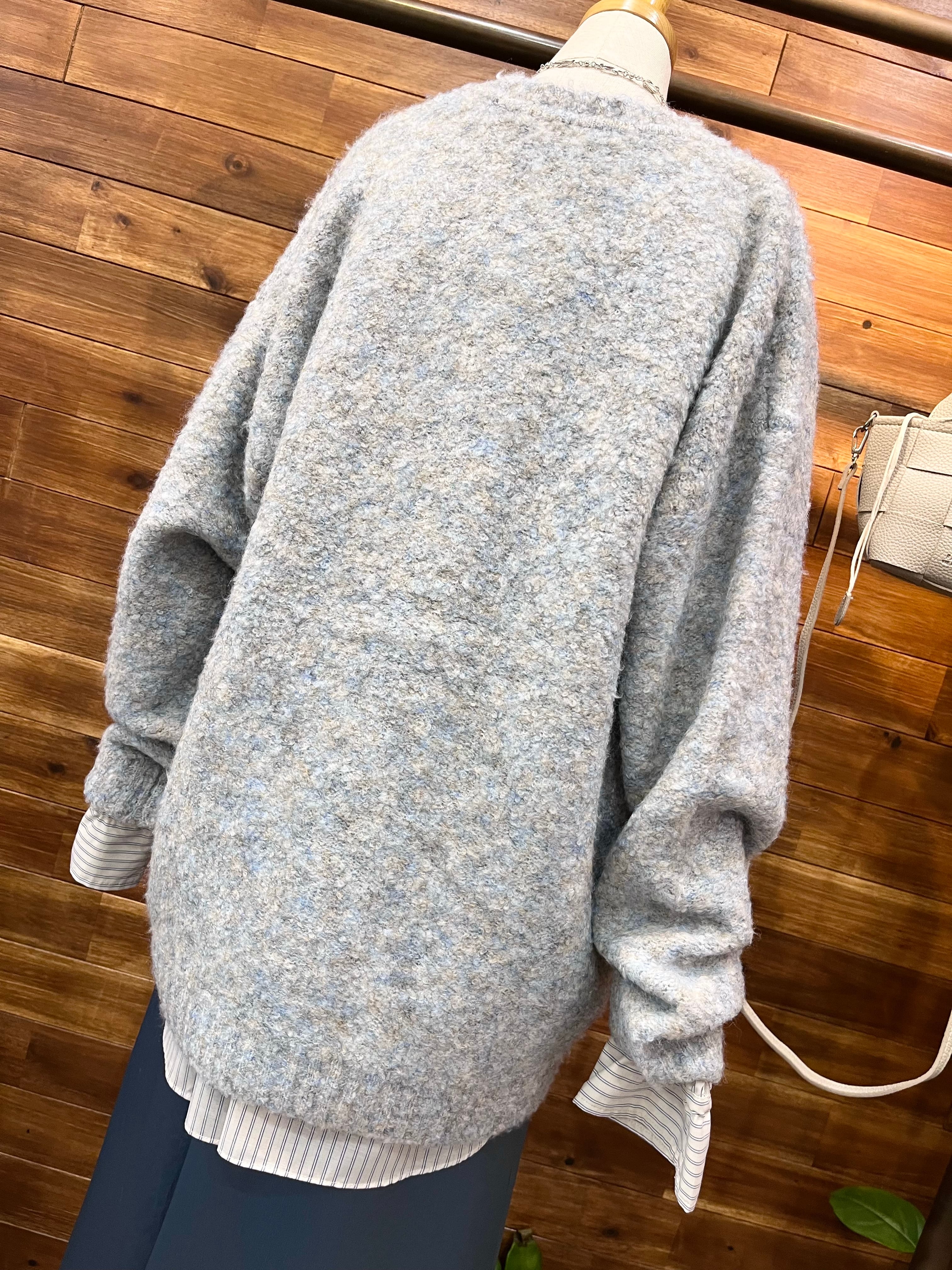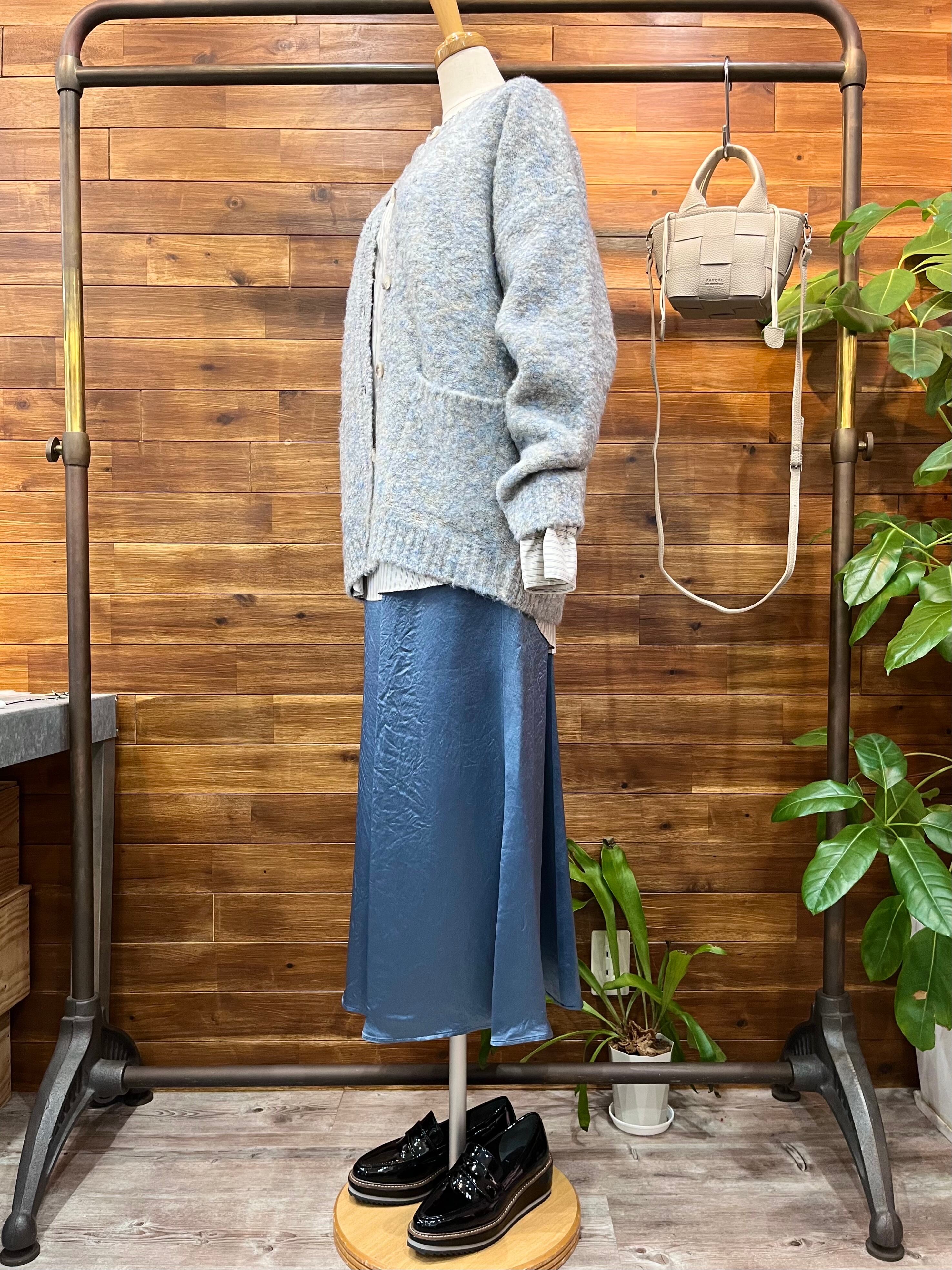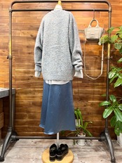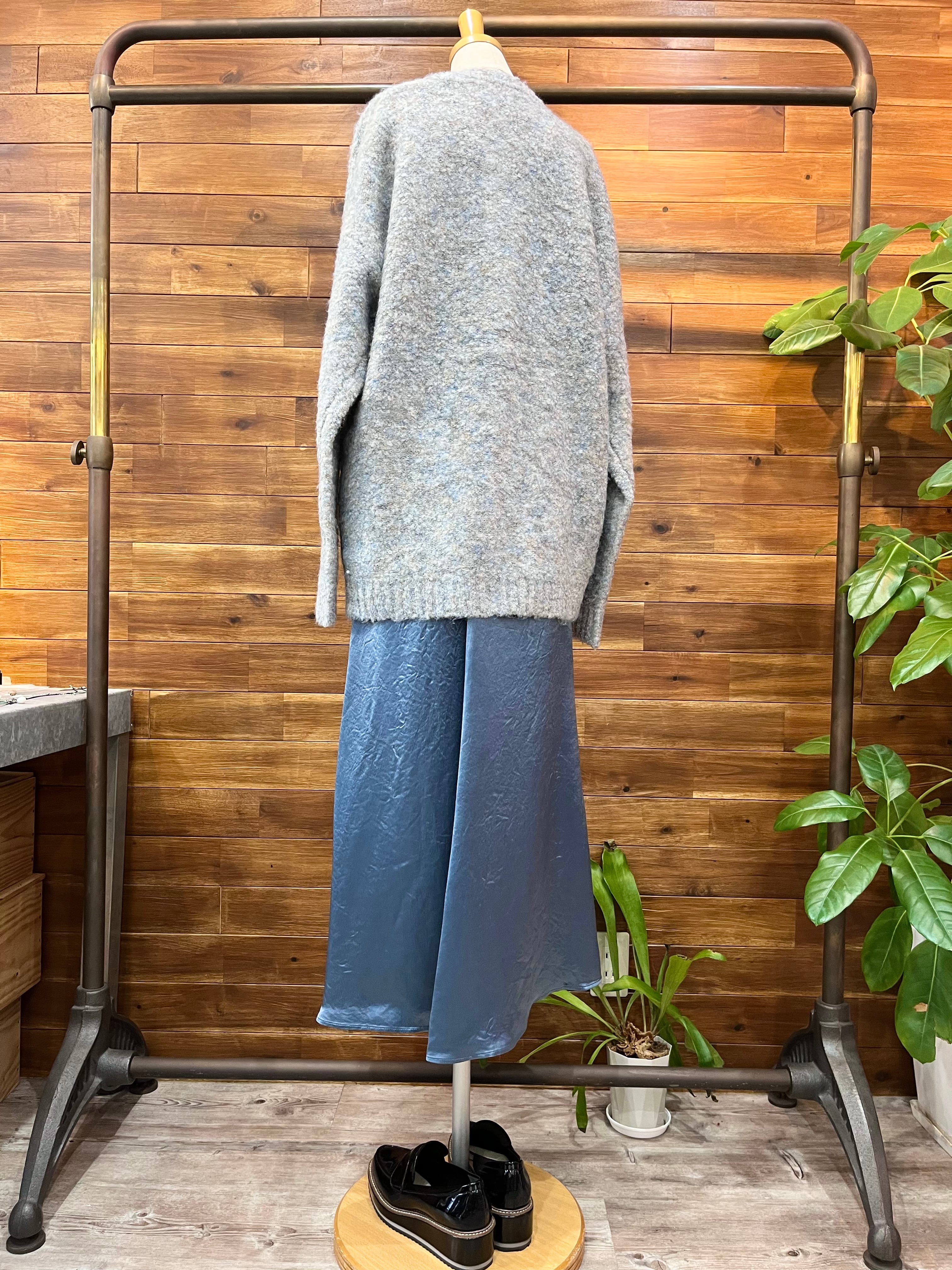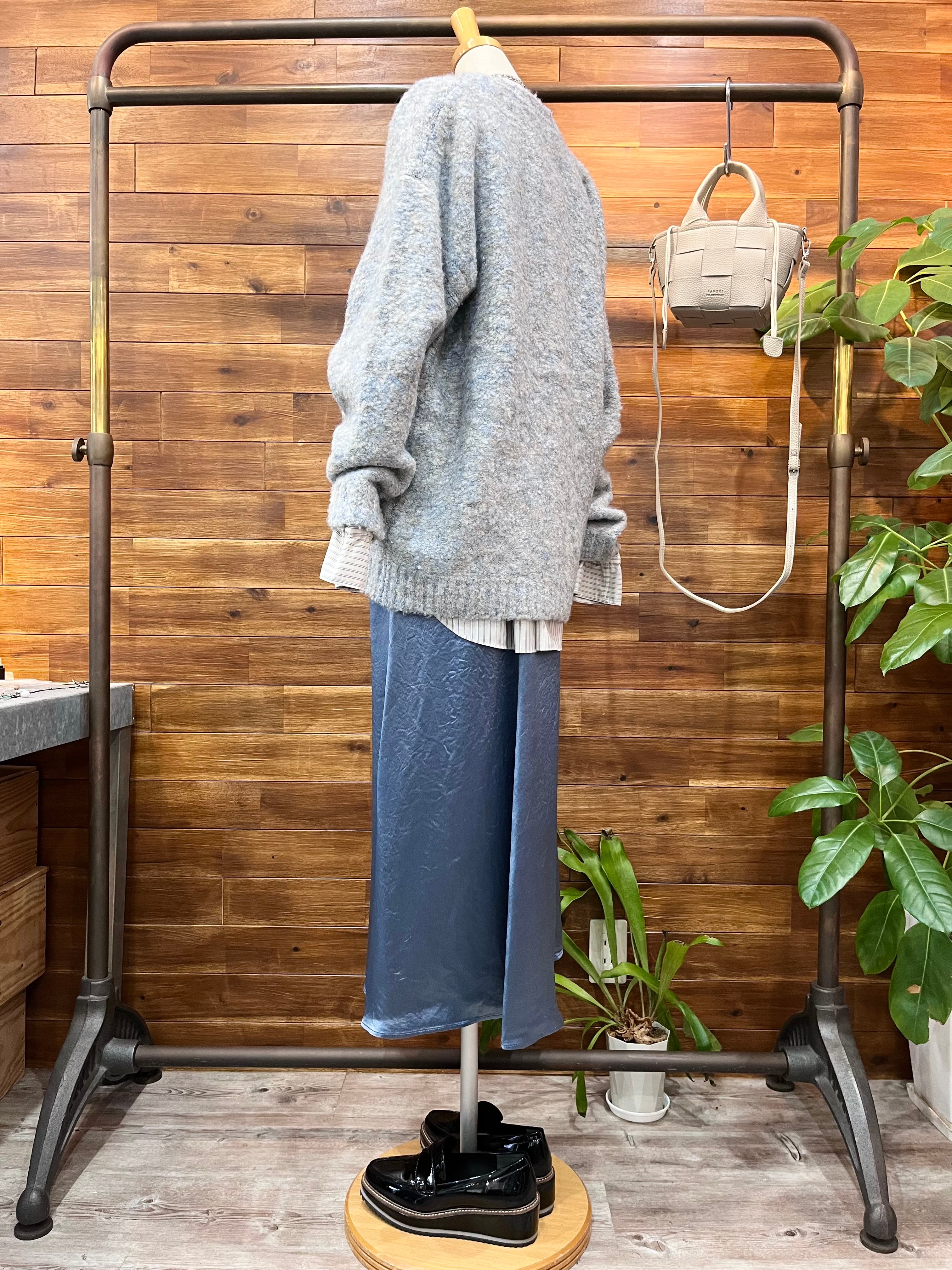 ヒップが隠れる丈感ですが、長すぎないのでパンツやスカートどちらとも相性が良く、ザックリ感が今っぽいカーディガンです。