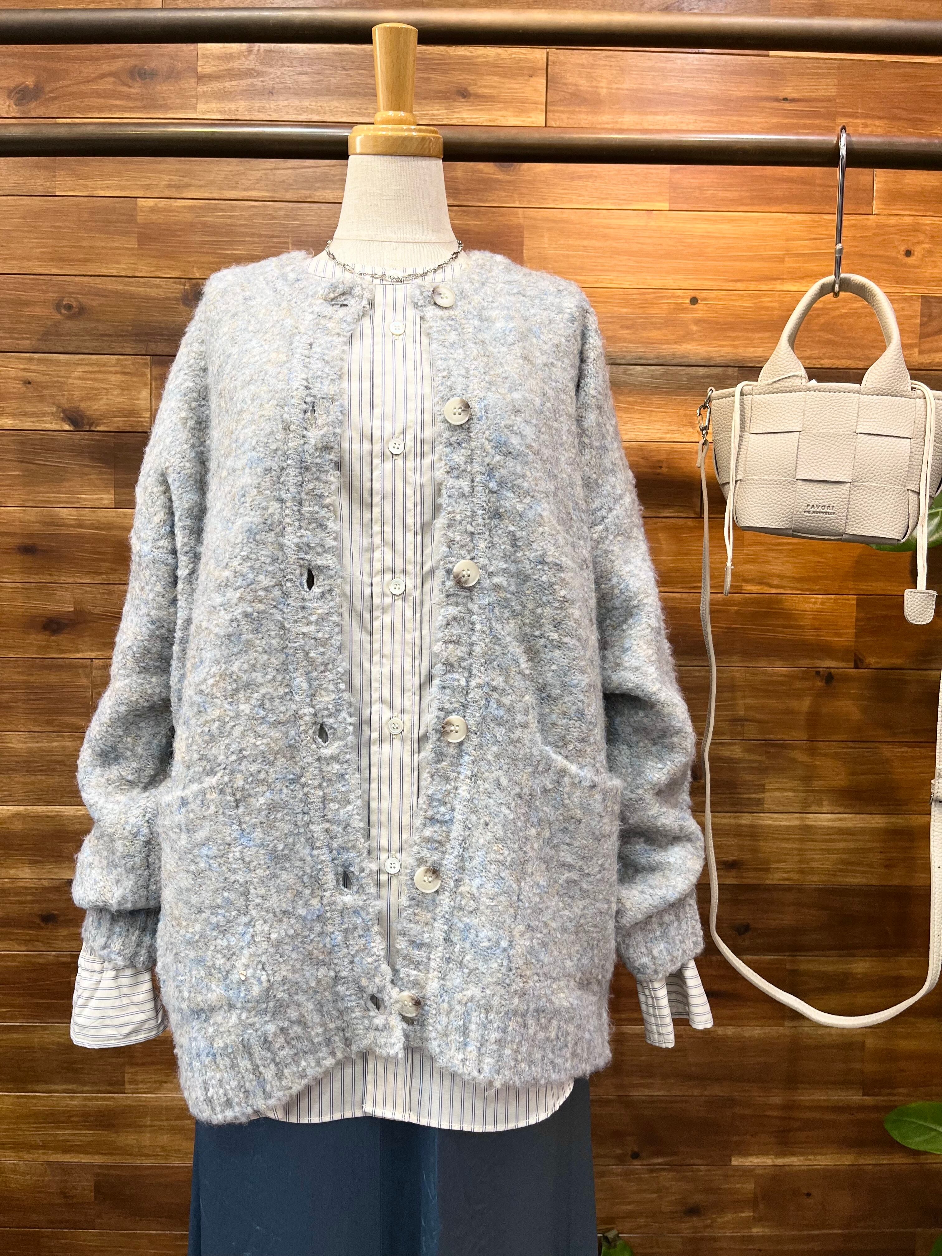 ループ糸を使用した表面感が特徴的なニットカーディガン♪