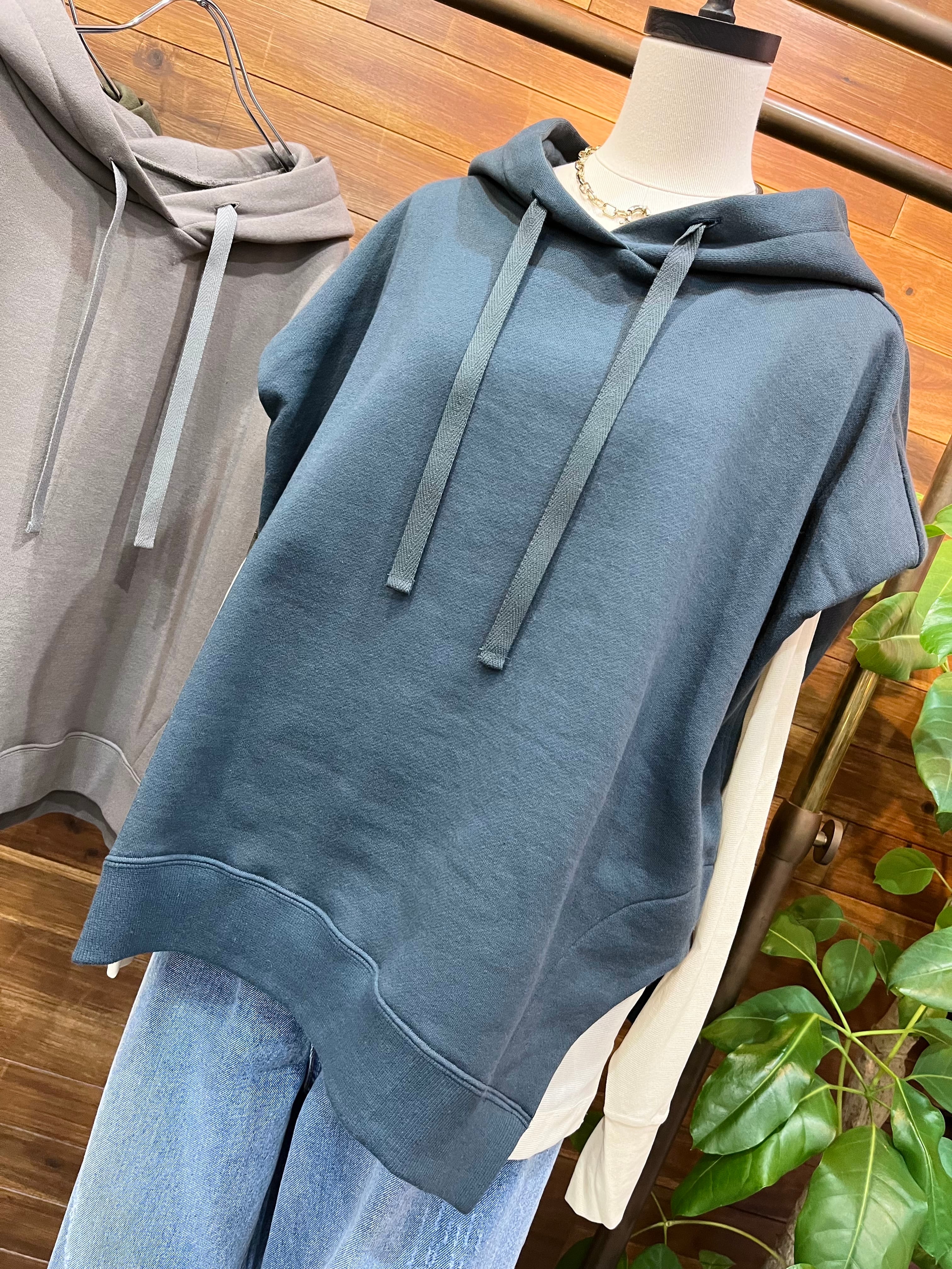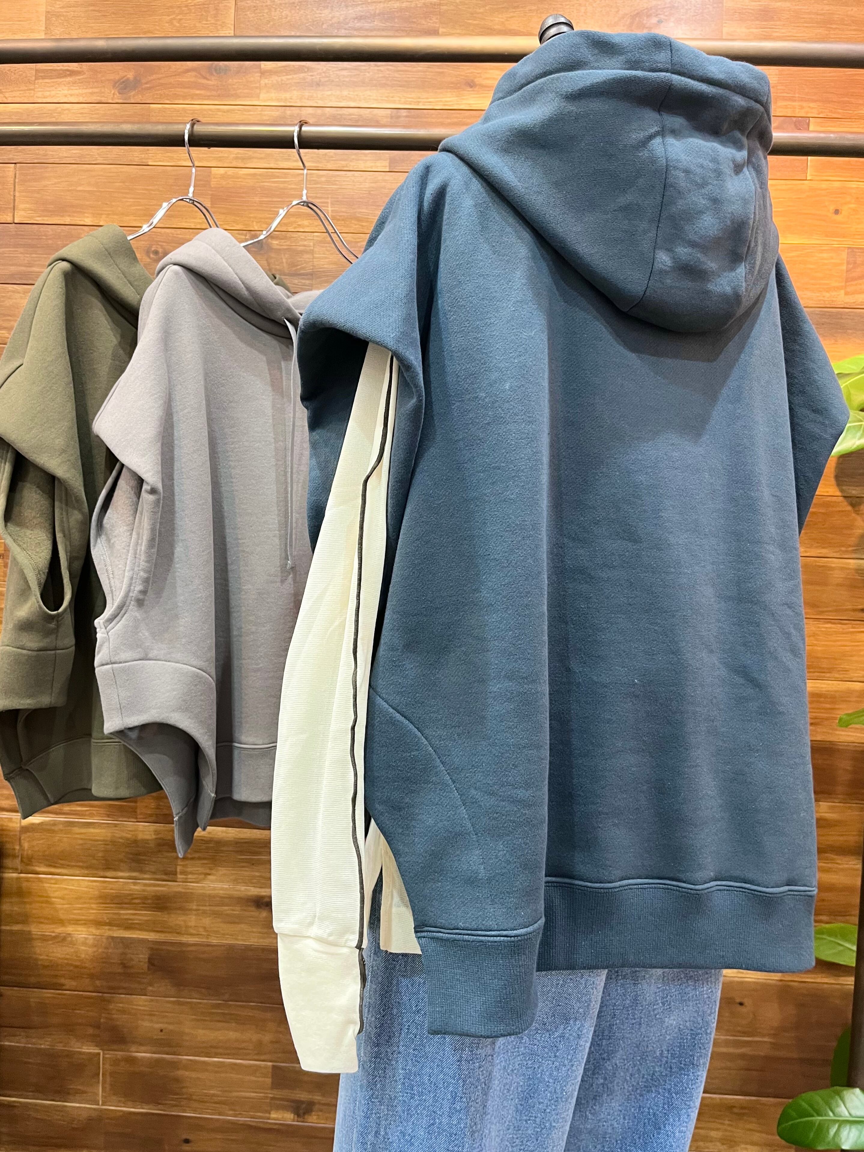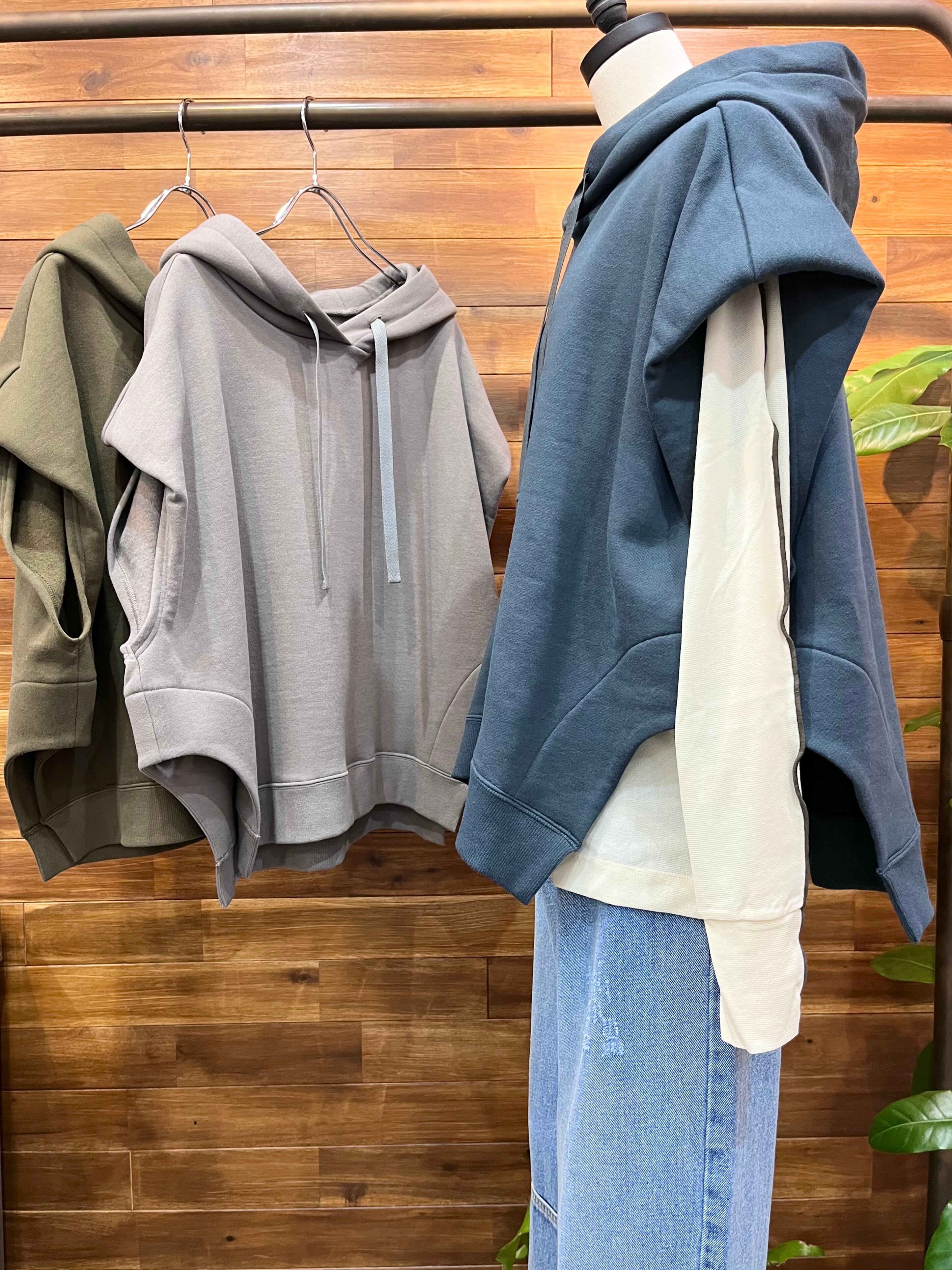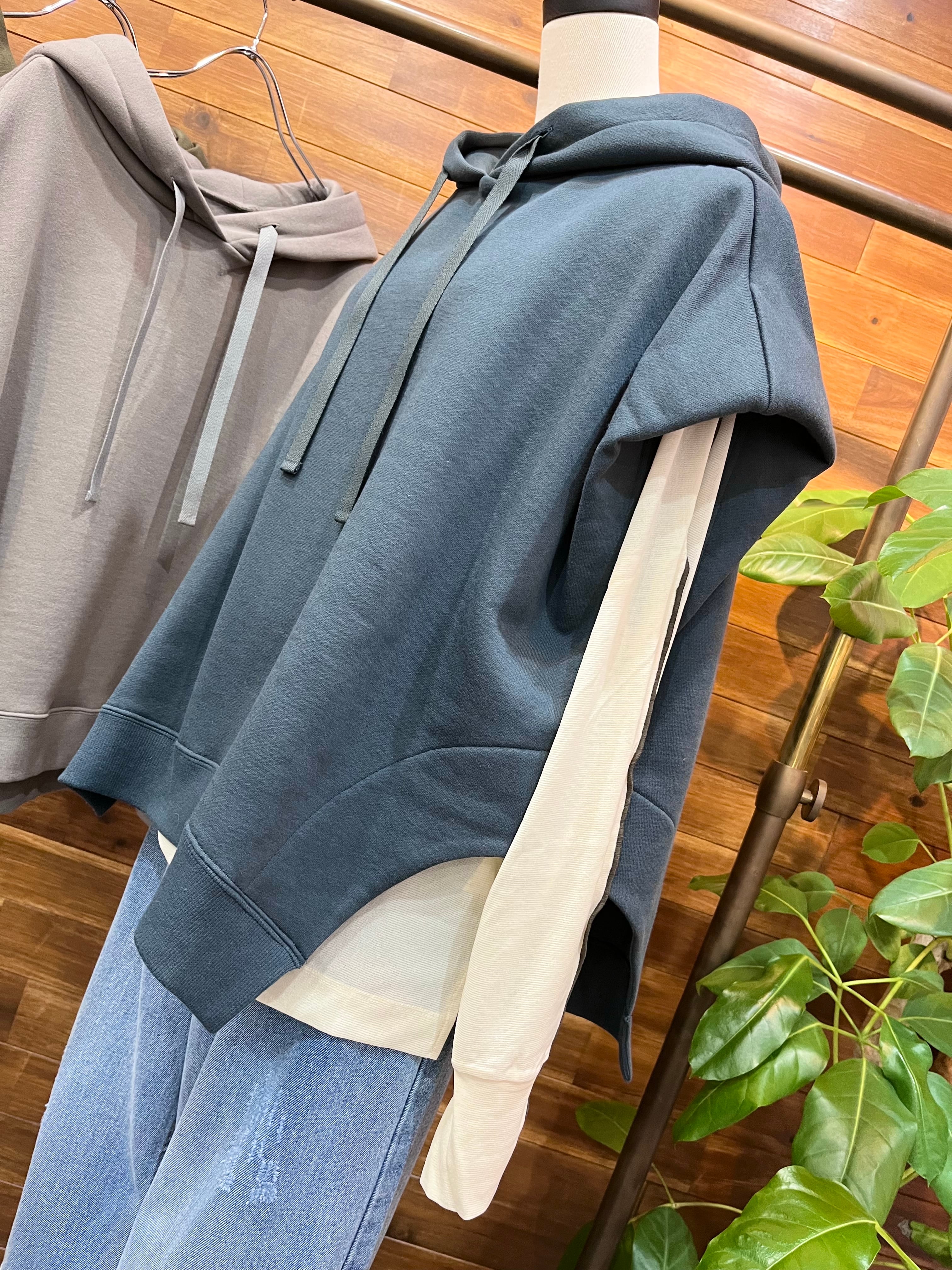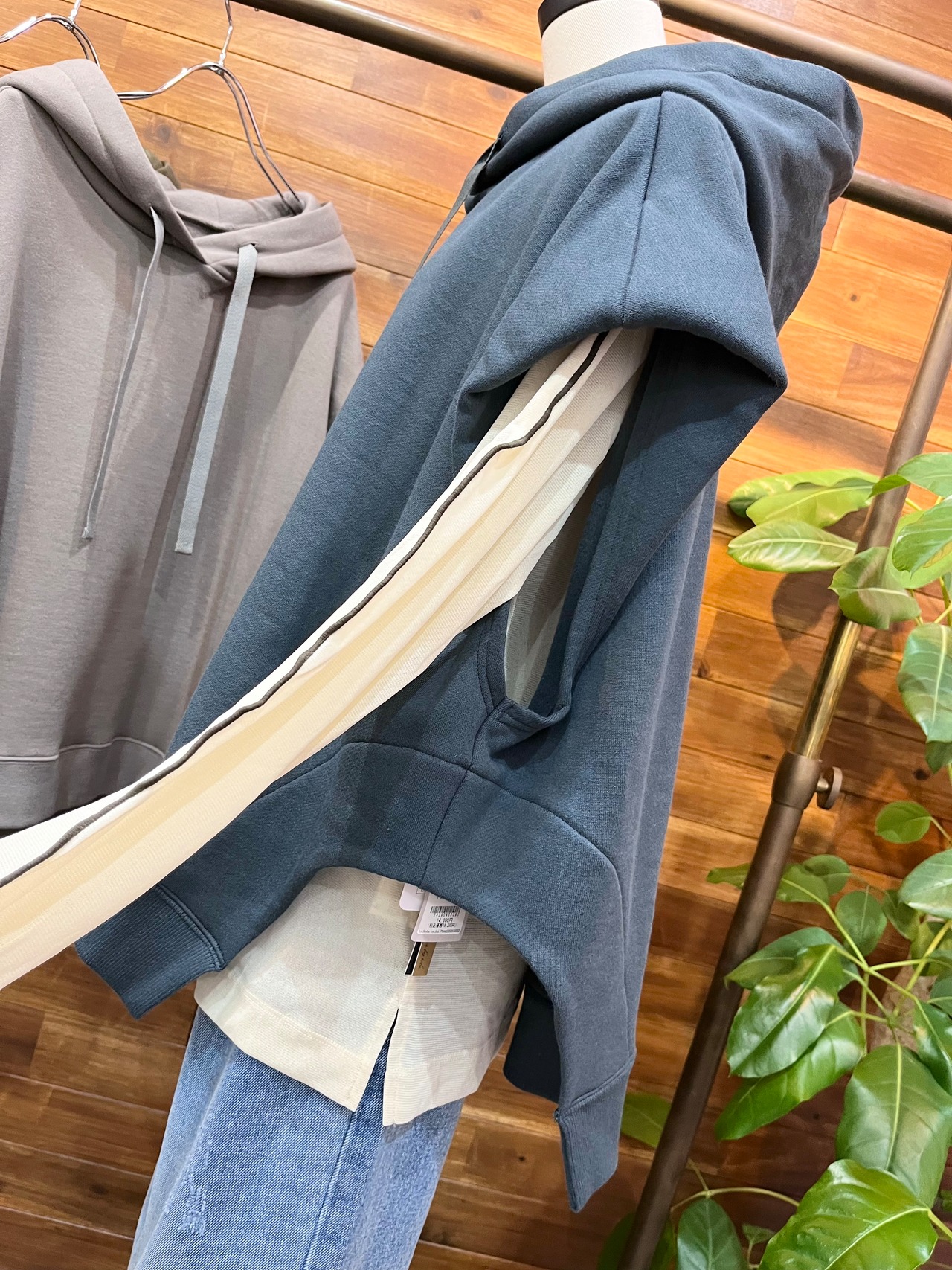 内側に折り込んだフレンチスリーブと、大きくラウンドしたサイド裾のデザインがポイントです◎