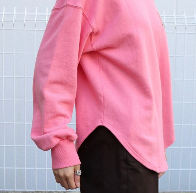 ドロップショルダーで、カジュアルながらも女性らしい印象に。