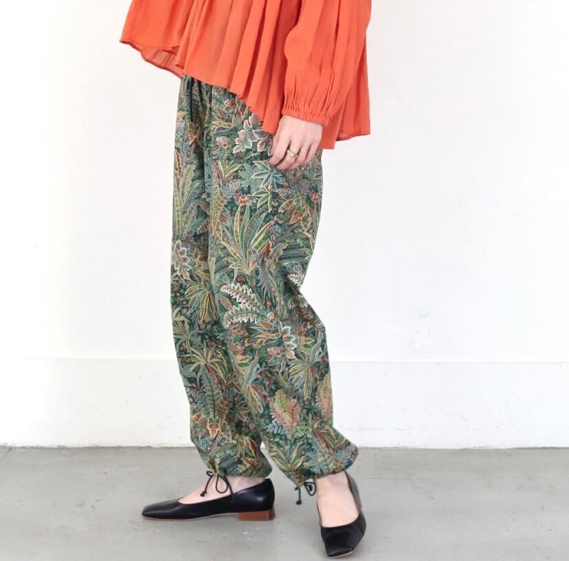 軽くパカパカとしたタッチのこの生地を触った瞬間に作ろうと、デザイナーがひらめいたベイカーパンツ♪