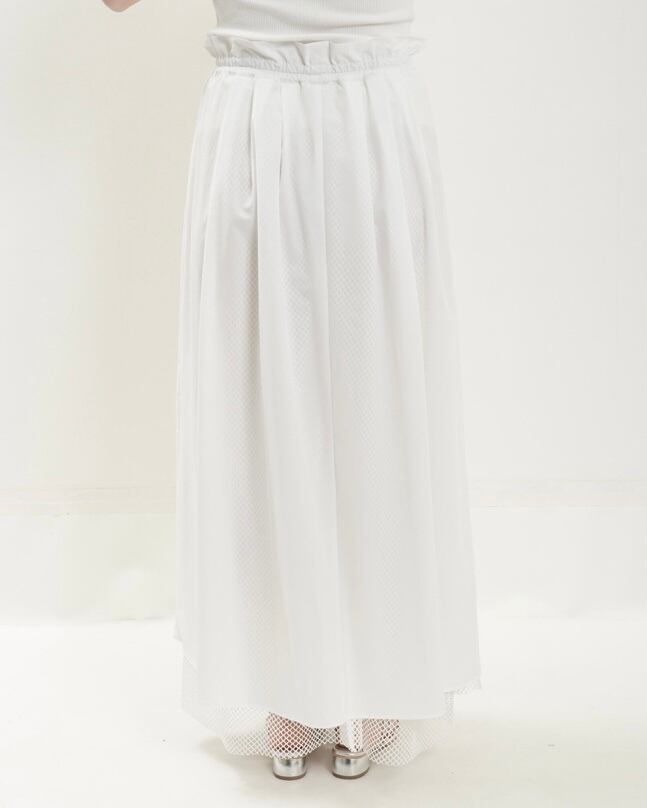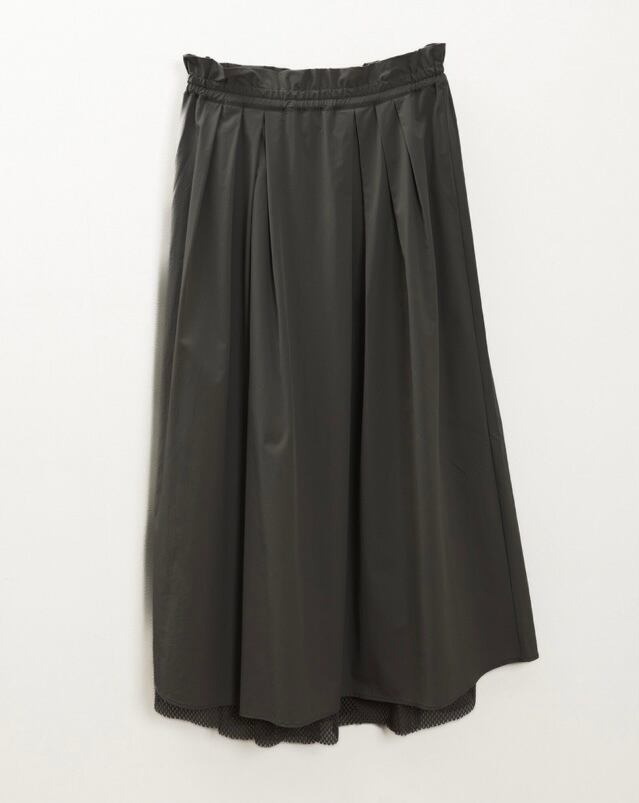 スポーティーな印象のナイロン素材とトレンド感あるメッシュ素材を重ね、メッシュのハリ感を利用してシルエットが出るようなモードなシルエットに仕上げました。