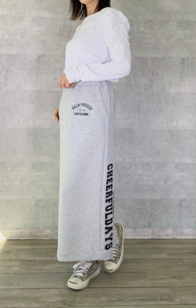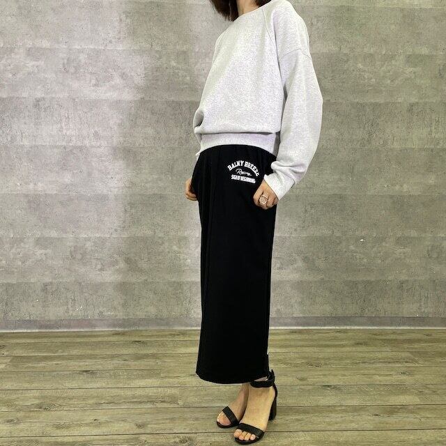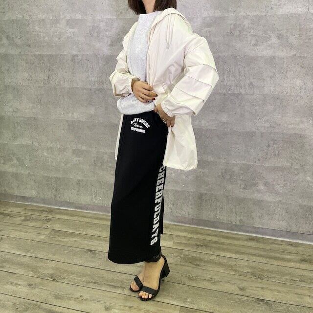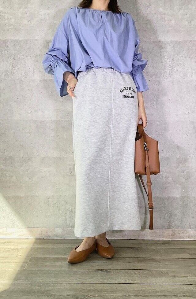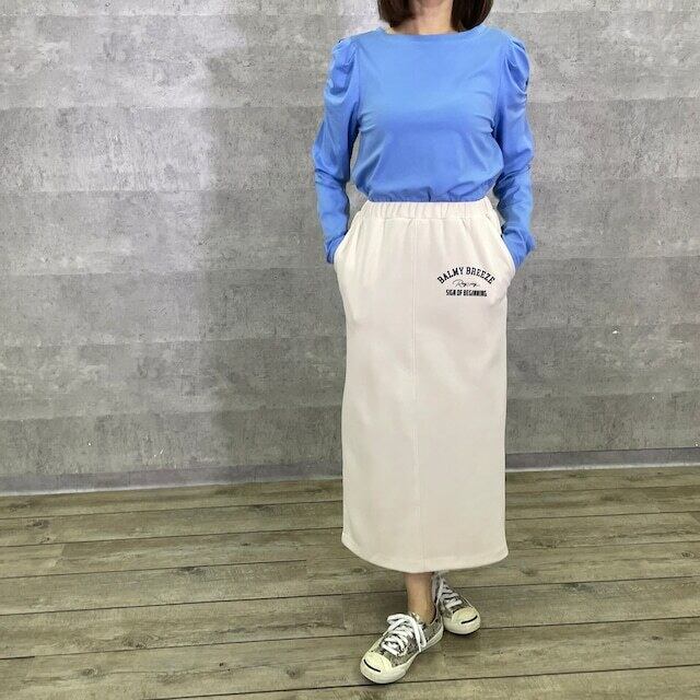 タイトスカートながら柔らかいボンディングカットソー素材でイージーな履き心地が魅力的。