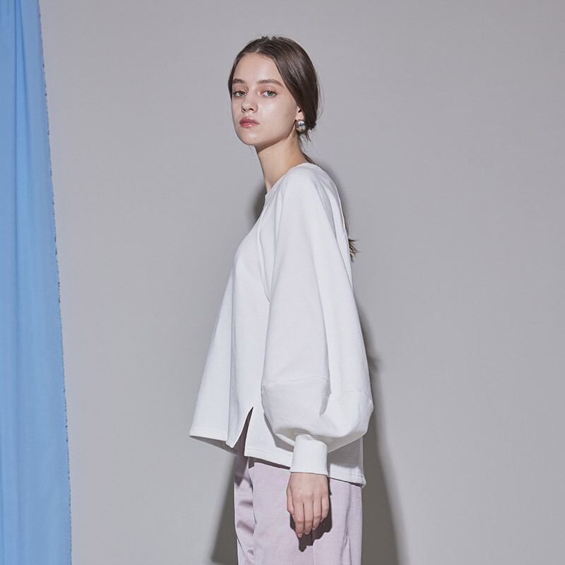 スリーブがたっぷりランタンのような優しい膨らみのあるトップスです。