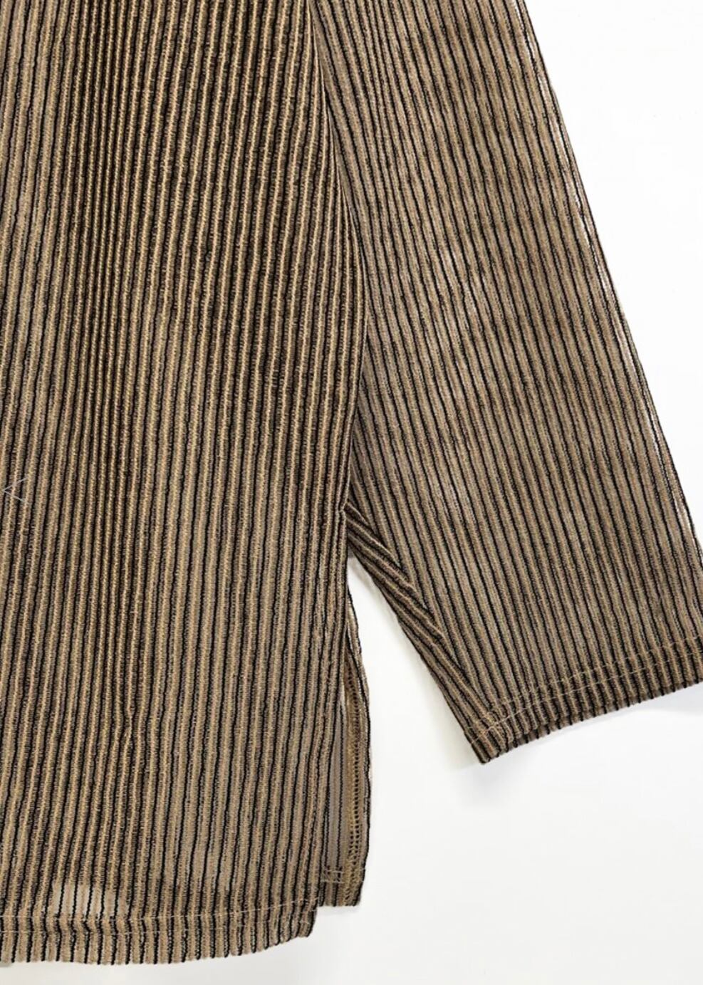 またBLACKは無地見えですが、ストライプに透けているため、新鮮なシアートップスになっています。