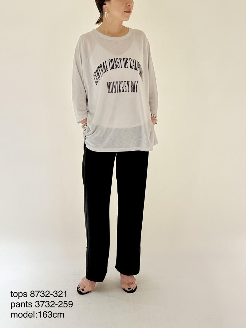 ルーズで着やすいサイズ感はそのままに袖は手首が見えるスッキリ七分袖にしています。