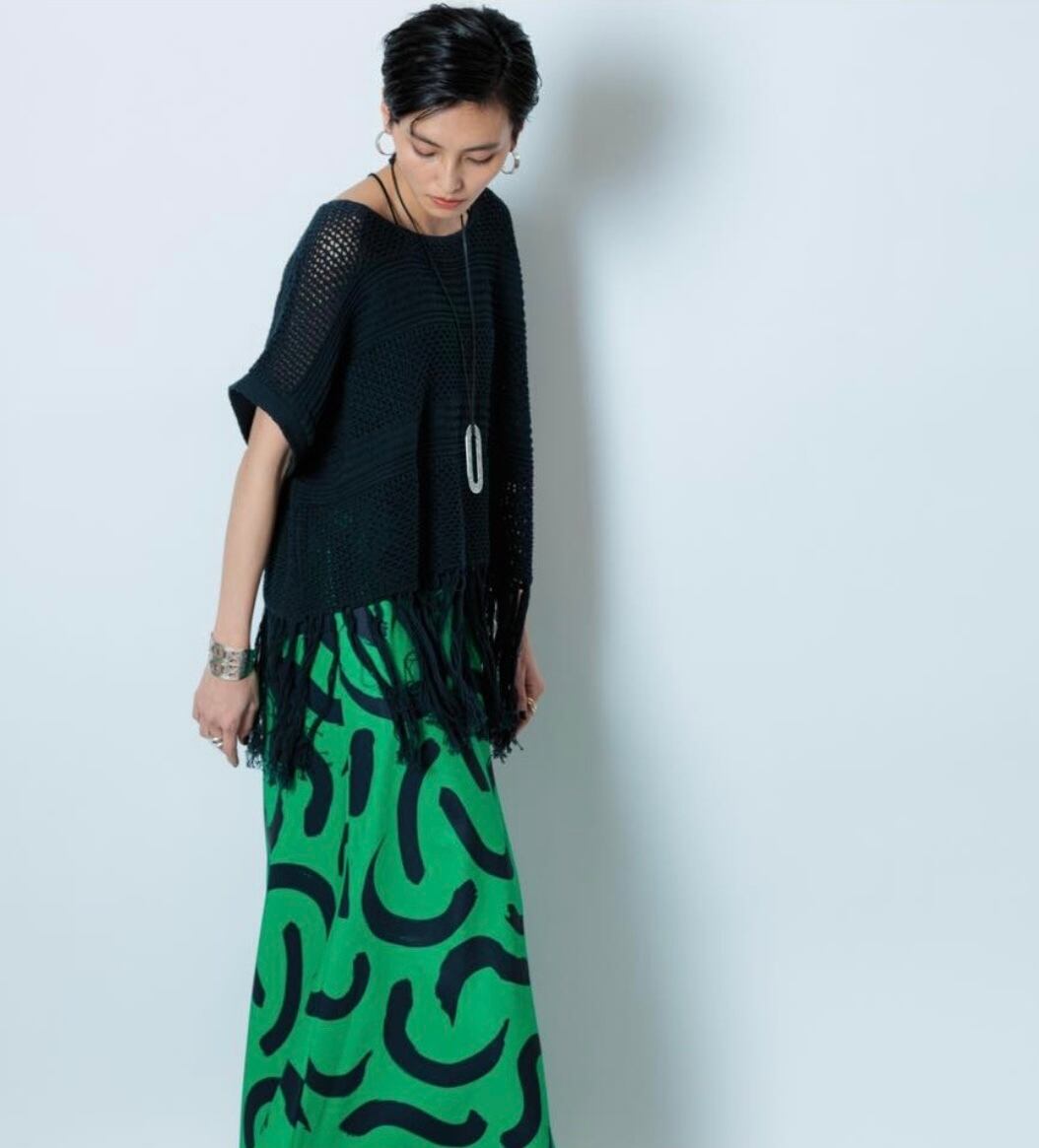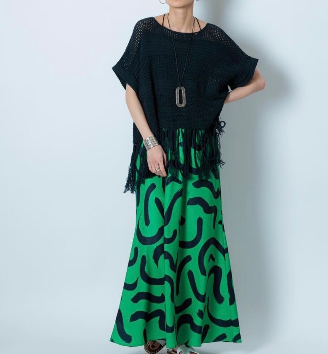 ボーダー状に透かし編みを施したざっくりとしたニットに仕上げました。
