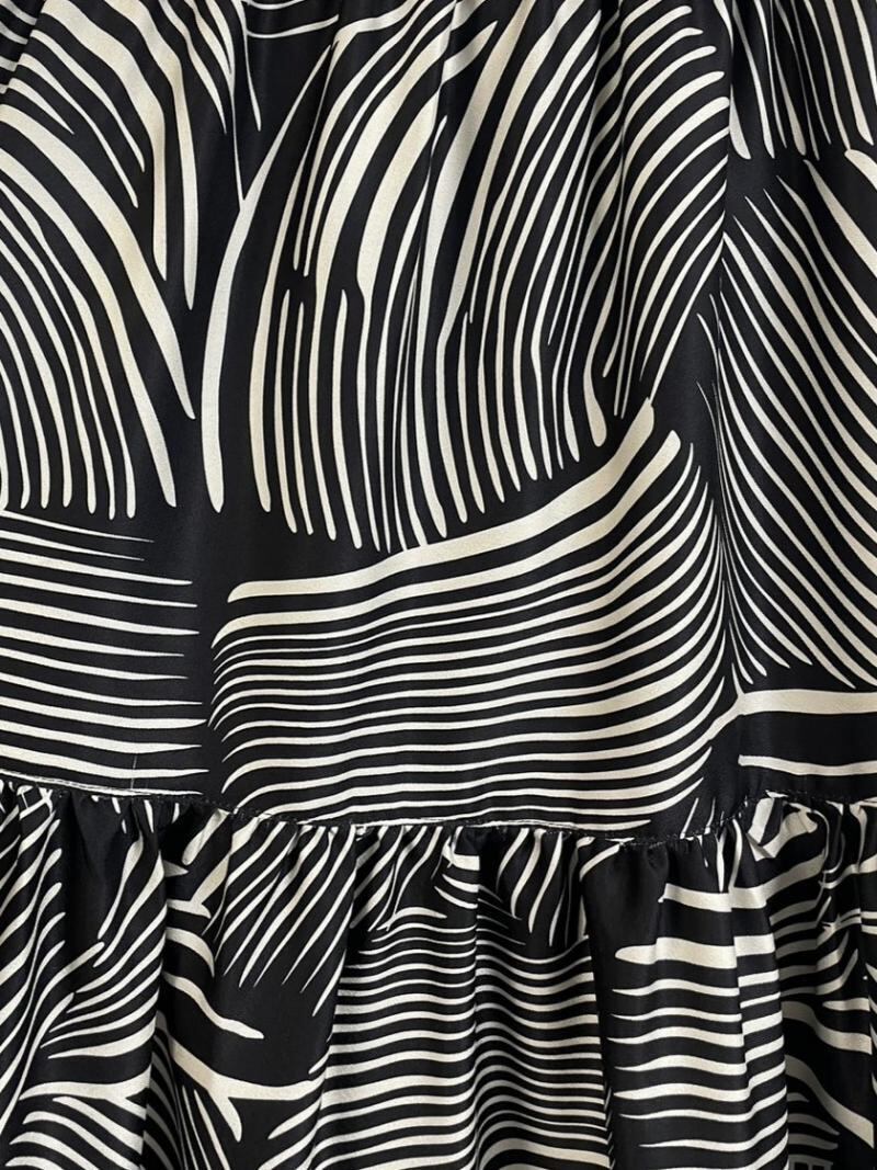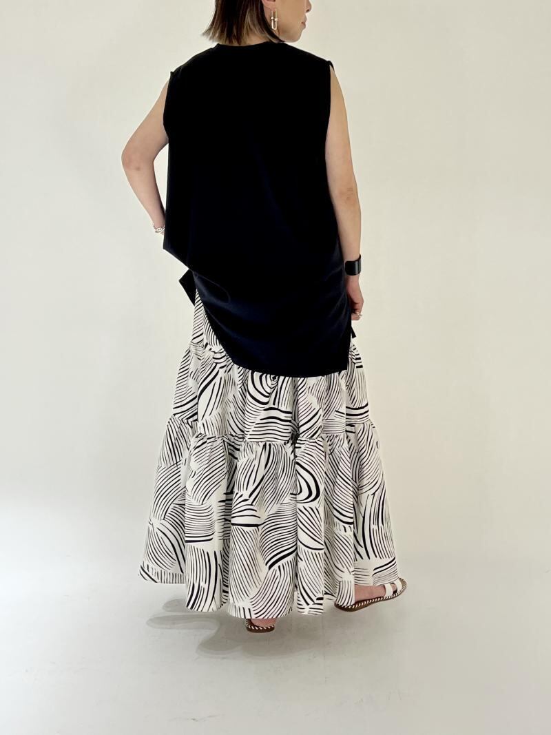 ブラシで描いたような単色の大人っぽい柄を使用した、3段のティアードSKです。