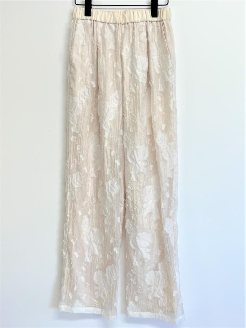 ストレートシルエットで、ウエストにはタックを施す事で腰回りにゆとりを入れています。