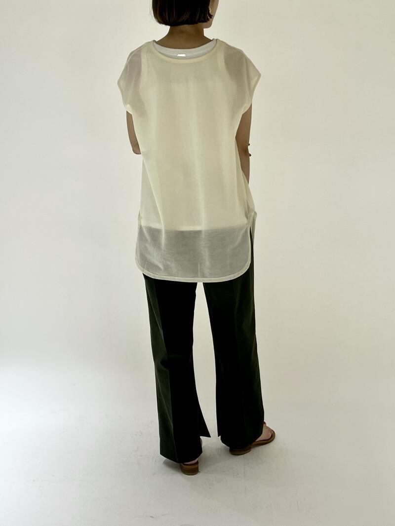 布帛見えのような素材感は着心地もよくトレンドのシアー感も上品で大人な印象の雰囲気になります。