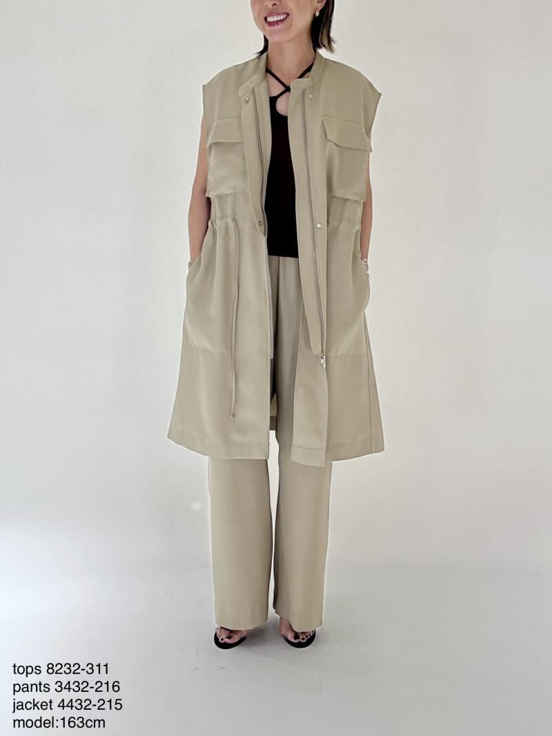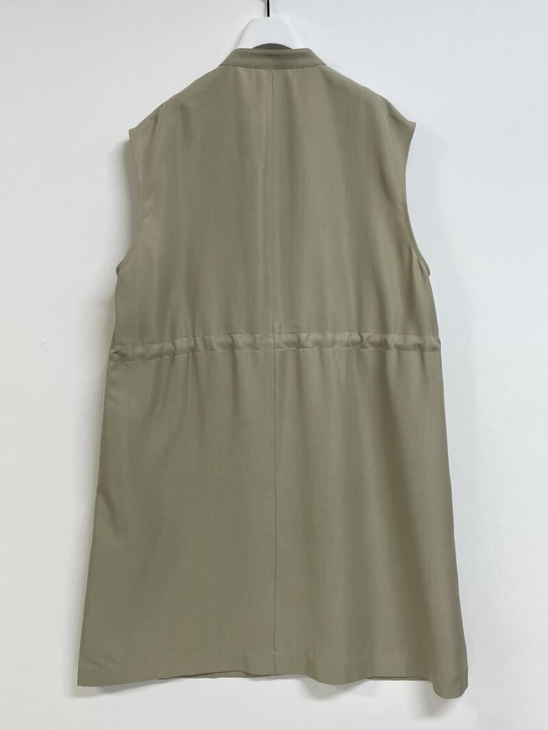 カジュアルの中にも上品で女性らしい印象に仕上げたロングベスト。