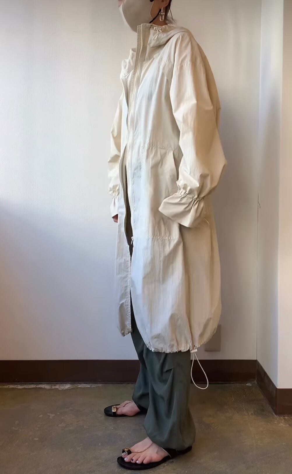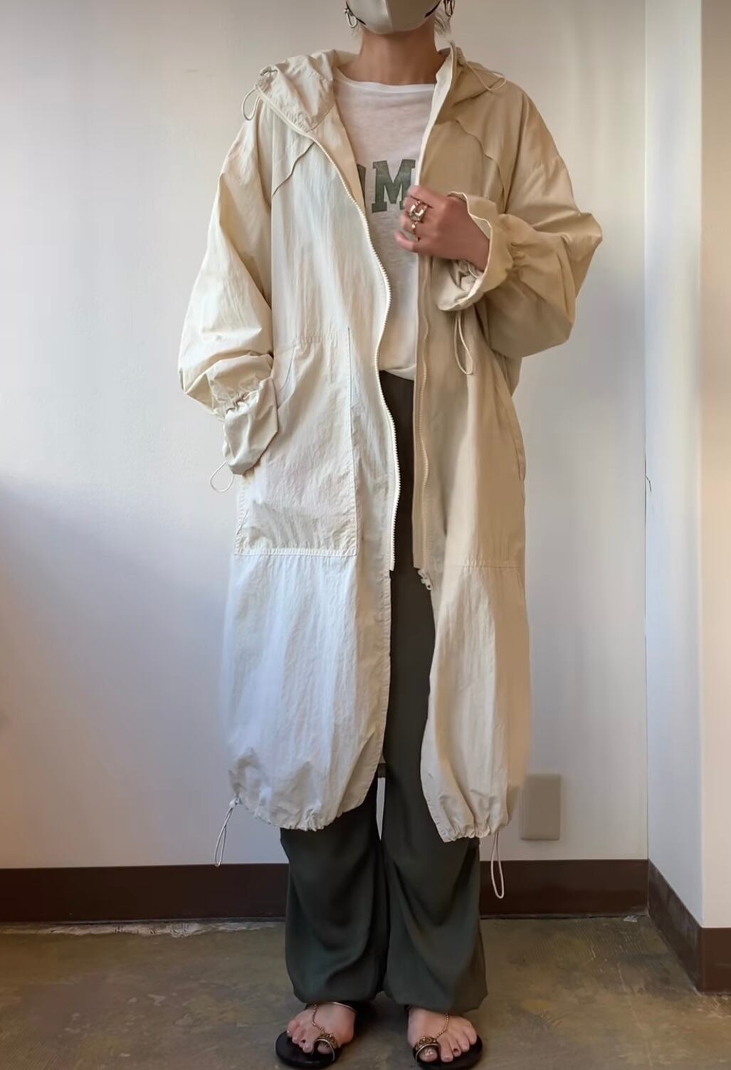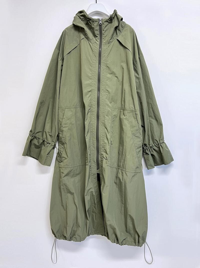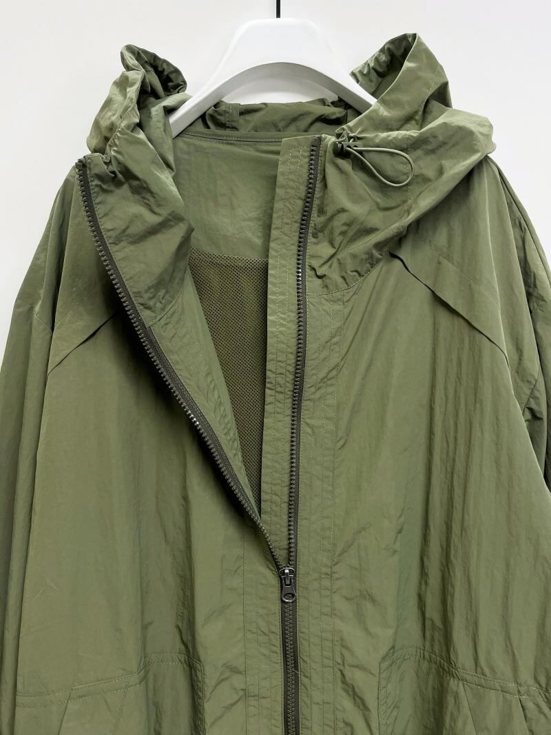 撥水の軽やかなナイロン素材を使用した、ロングのウインドブレーカーです。