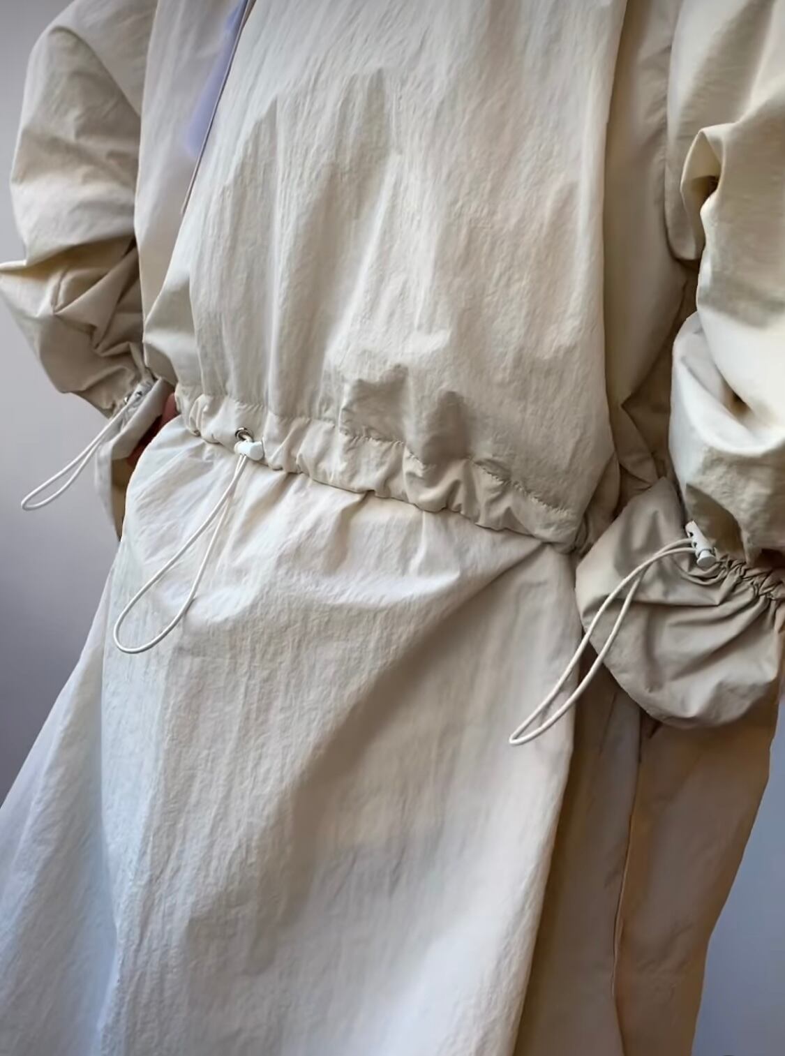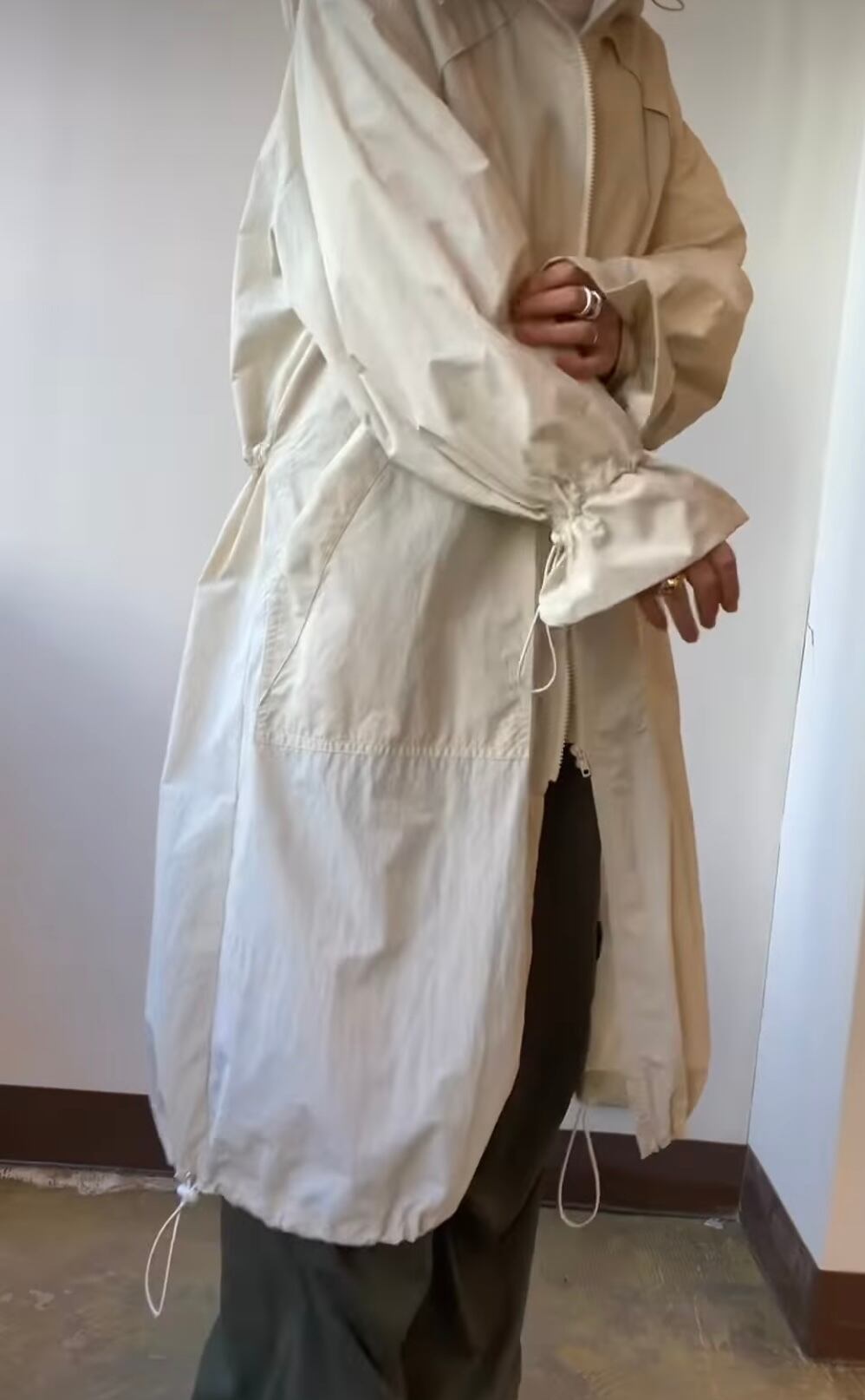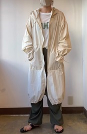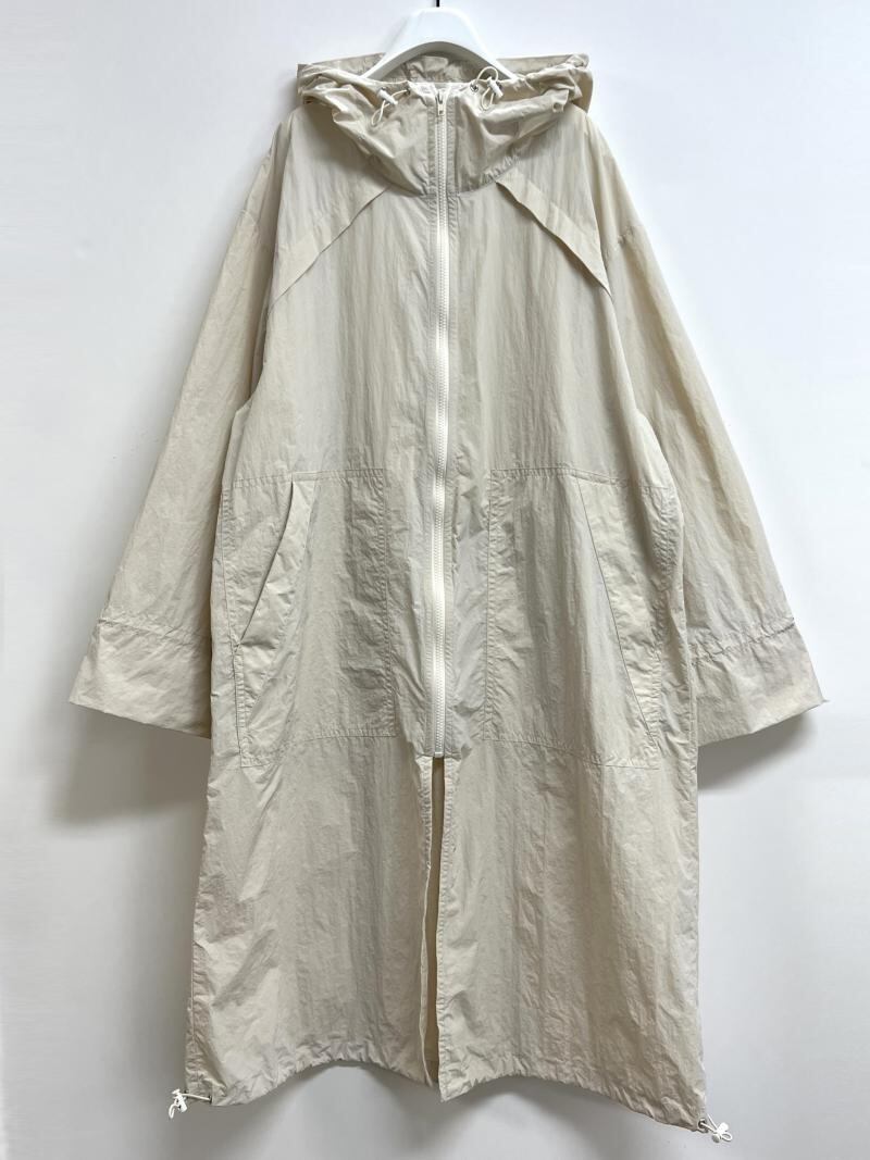撥水の軽やかなナイロン素材を使用した、ロングのウインドブレーカーです。