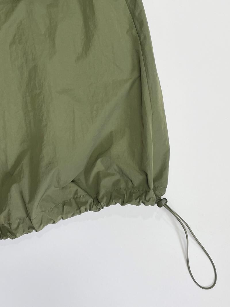 裾と袖口、後ウエストにはドロストを施しているので、全体的に絞ってギャザーを寄せたバルーンシルエットがおすすめです。