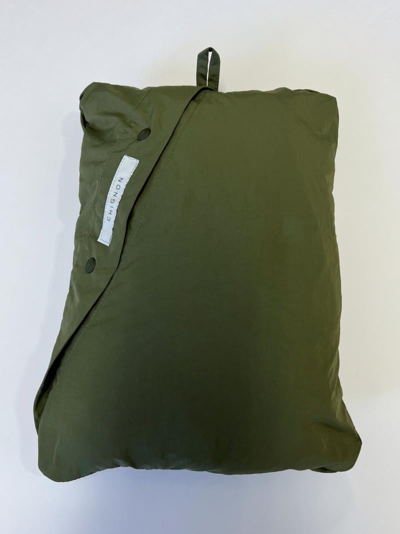 折りたたんでいただいて、サイドのパッチポケットに収納することのできるパッカブル仕様になっています。