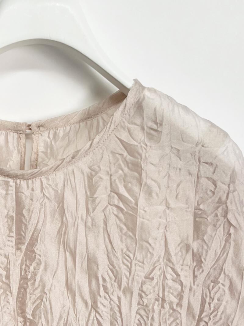 光沢感のあるシアー素材で、シワ加工された生地を使用しています。