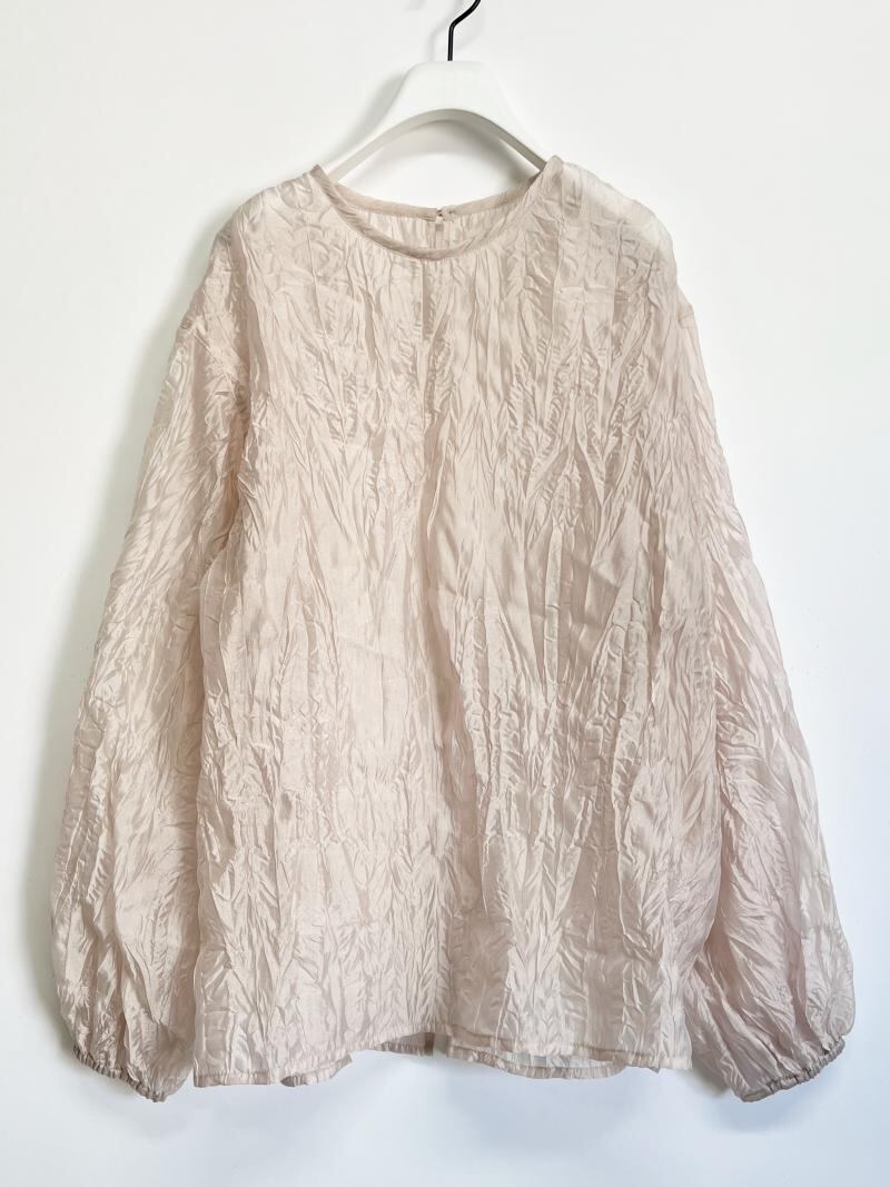 ワッシャー生地を使用したボリュームスリーブブラウスです。