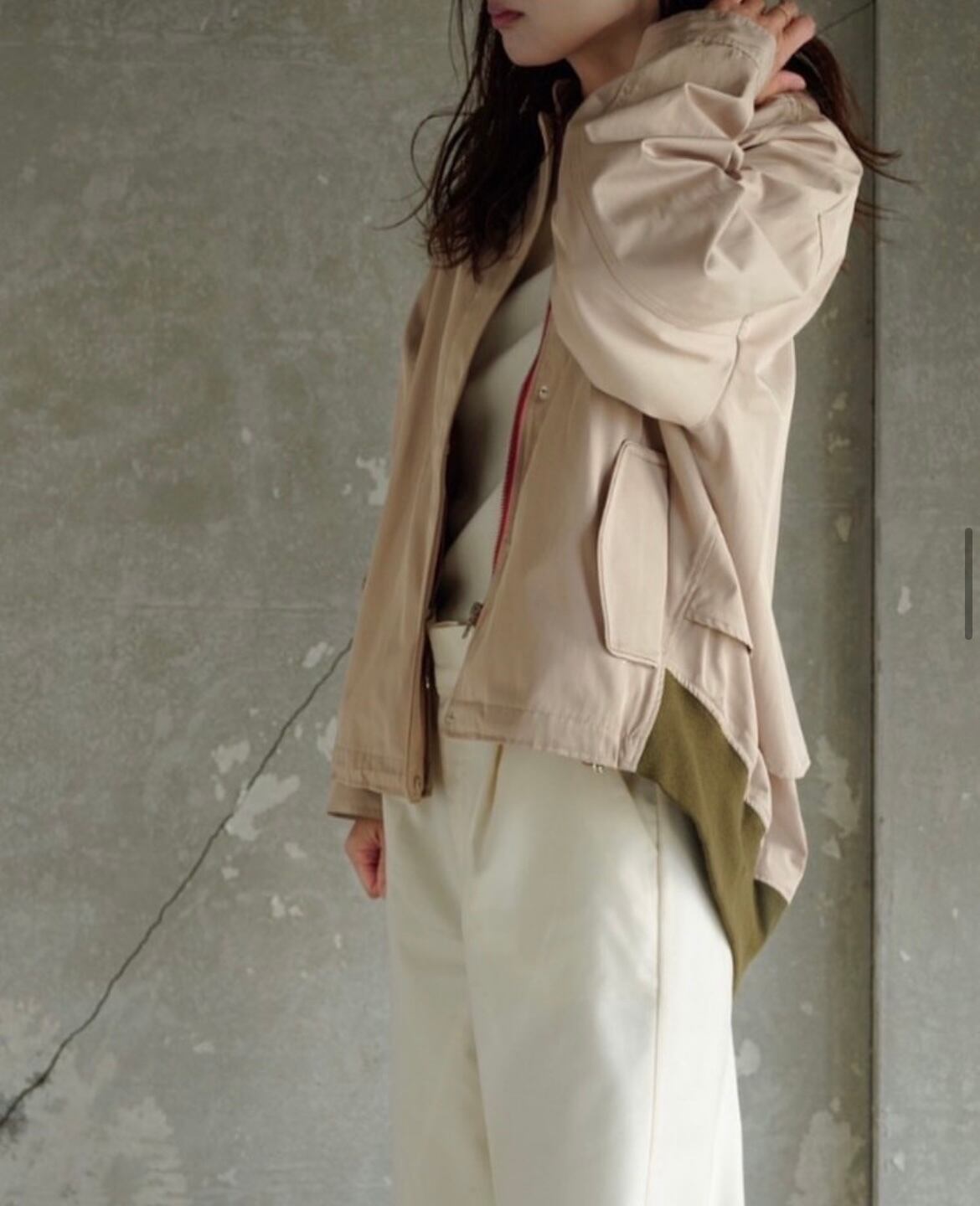 バックのタックとふんわりとしたシルエットで、抜け感たっぷりのオススメブルゾンです♪