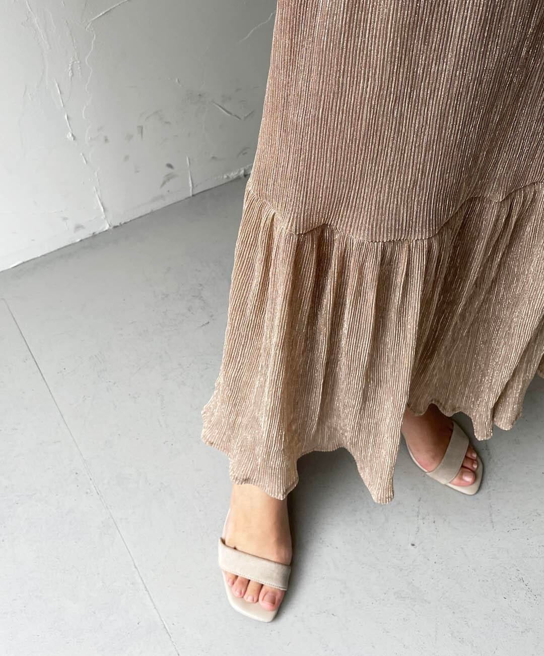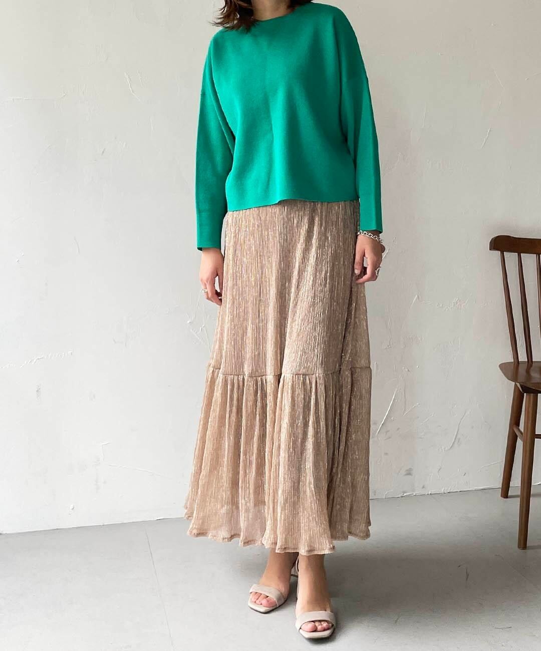 テロテロっとした落ち感のある細かなプリーツ素材で、シワも気にならず楽々な履き心地です◎