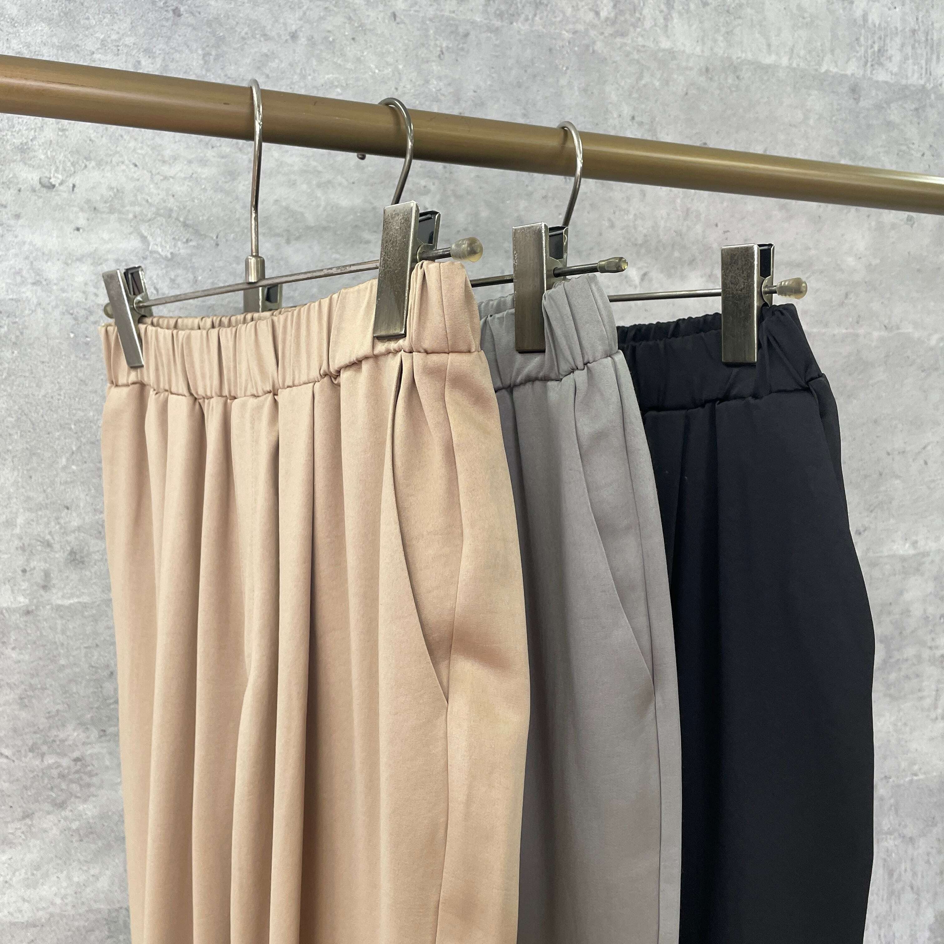 品のあるサテン地で、大人カジュアルに仕上げた一本。