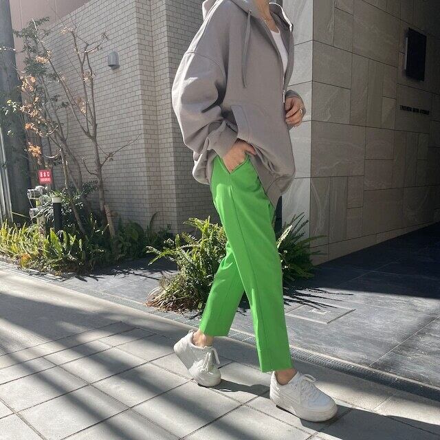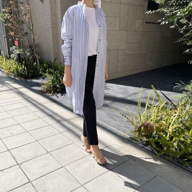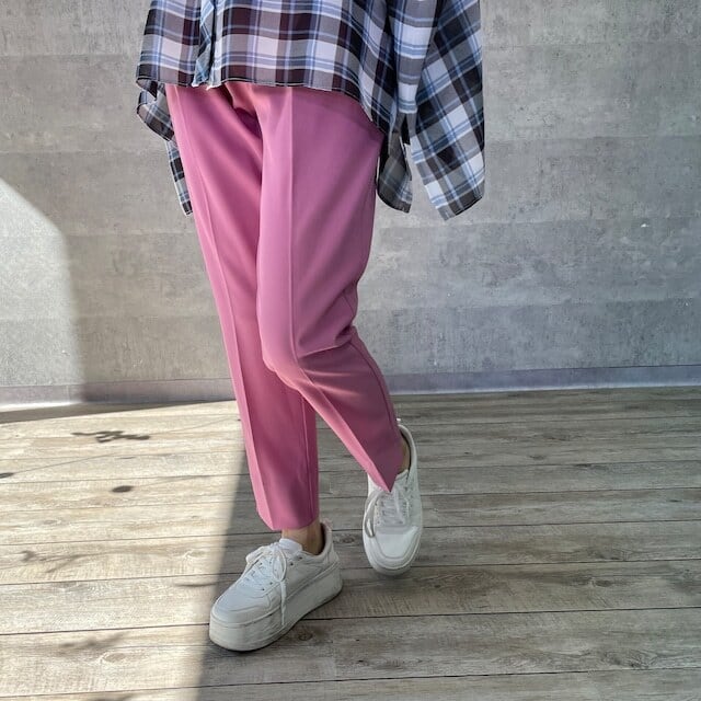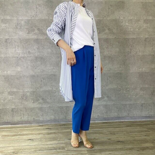 トレンドのシアートップスやシンプルなTシャツなど、様々なトップスと好相性です。