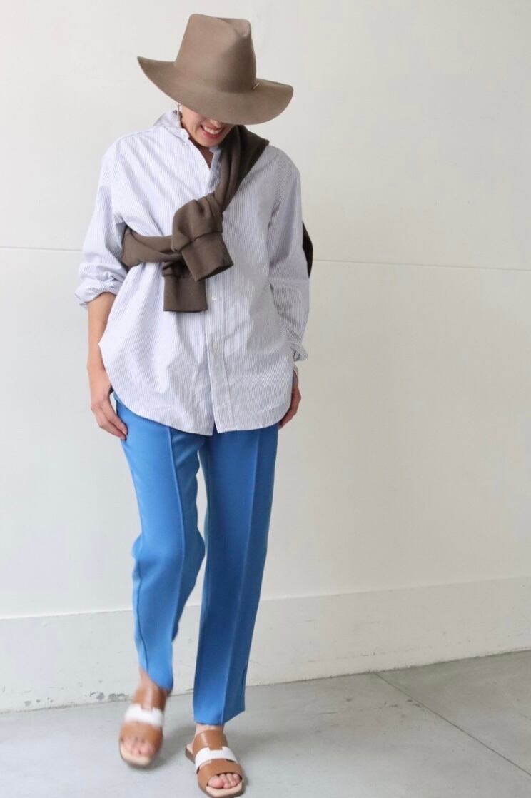 綺麗見えする生地感なので、カラーによってはオフィスなどにも、幅広いシーンで活躍します。色違いであっても重宝するアイテム◎