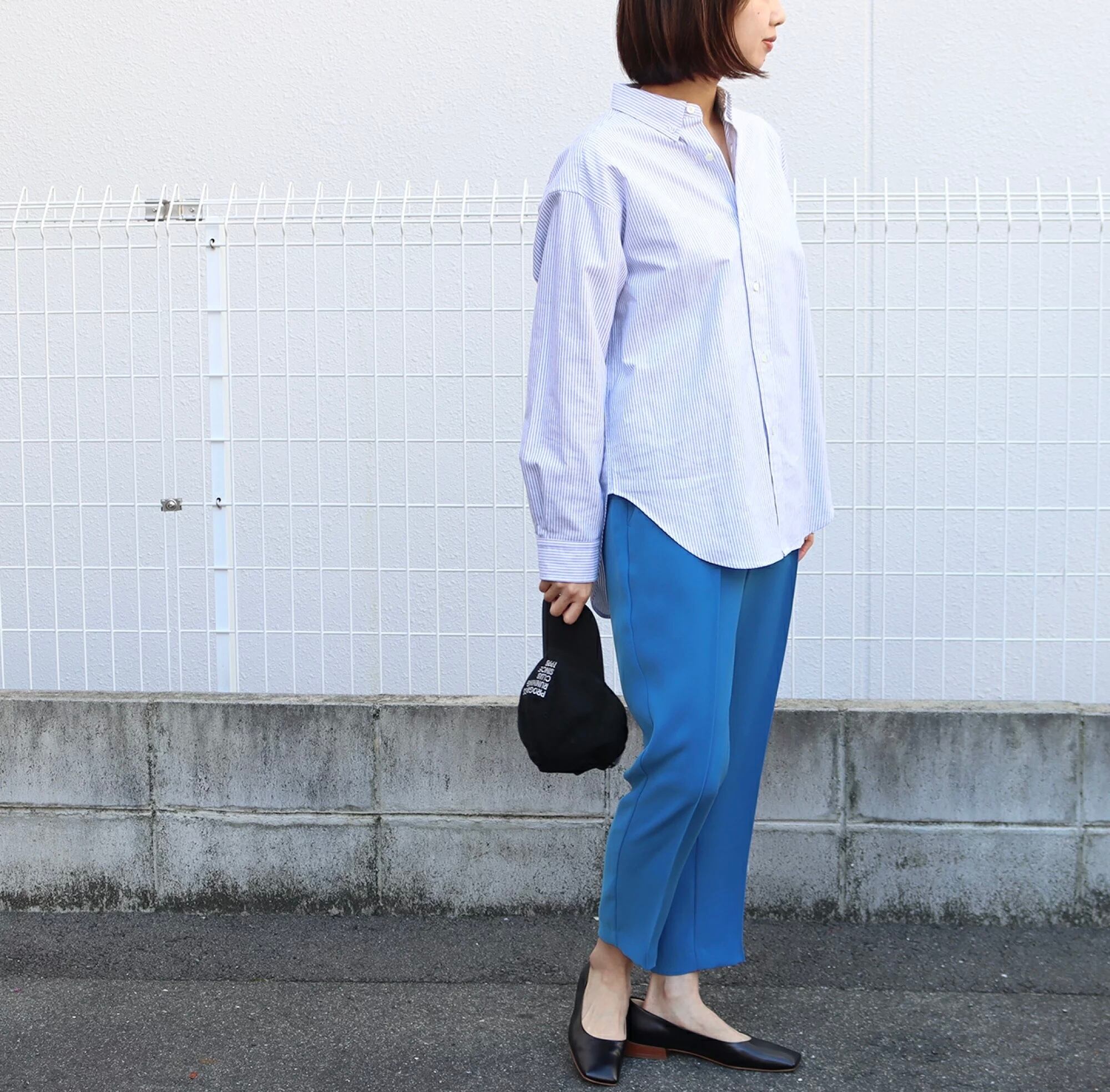膝から下はストンと落ちるテーパードライン。フロントには細いピンタックを施し、縦長シルエットを強調してくれる嬉しいポイント。