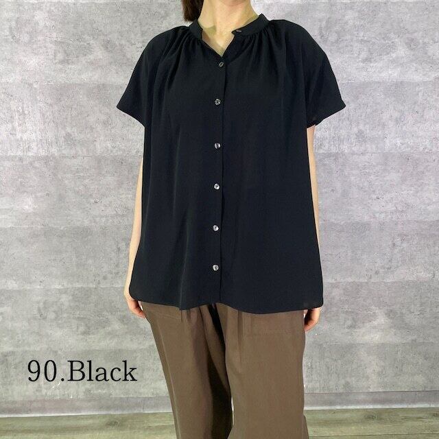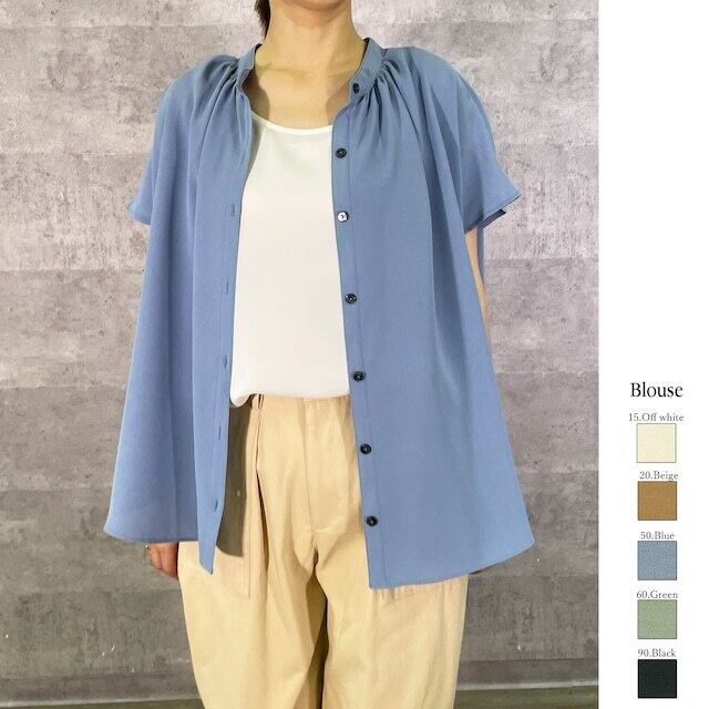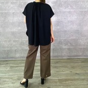 後ろ襟ぐりのギャザー使いが女性らしい印象をプラスします。