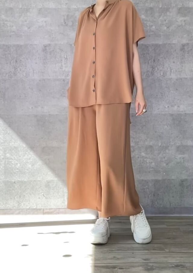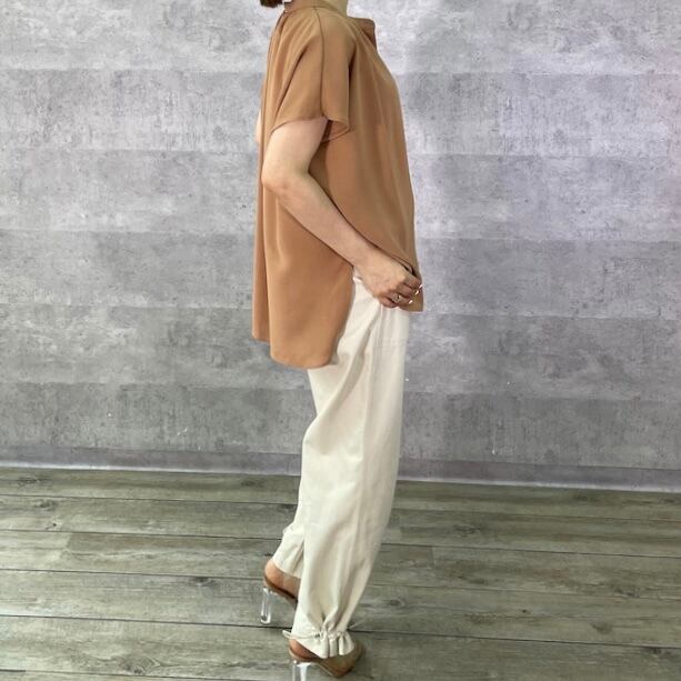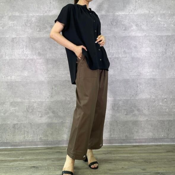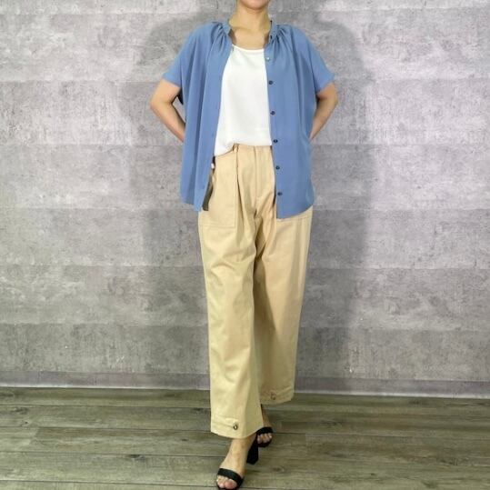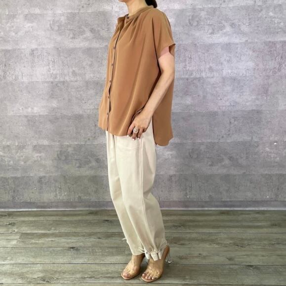 イージーワイドパンツや、ギャザーバンドカラーワンピースとの組み合わせを楽しみながらスタイリングをアップデート♡