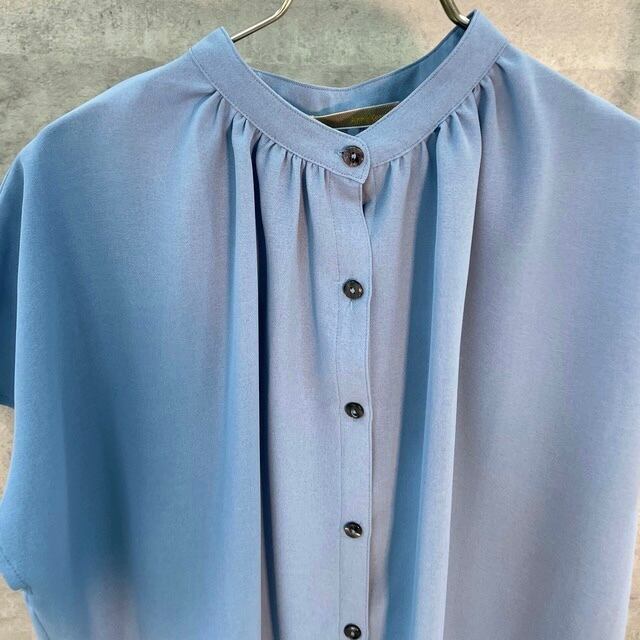 首元はスッキリとした印象を与えるバンドカラー仕様。