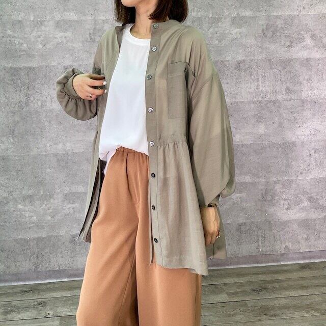 ウエストのギャザーデザインは、シルエットにメリハリが出て、スタイルアップ効果も期待◎