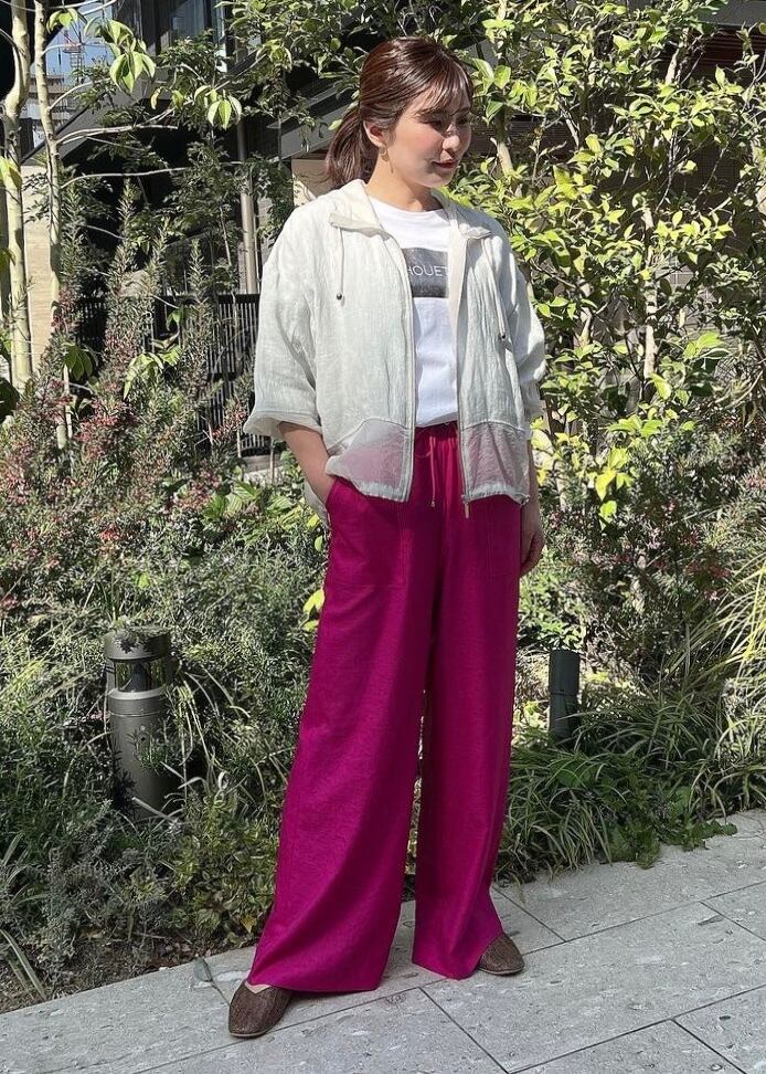 ストンと落ち感のある素材と、程よいセミワイドシルエットで、足を真っ直ぐ綺麗に見せてくれます♡