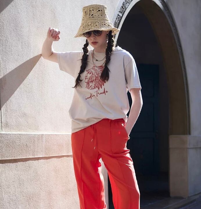 上質なUSAコットンを使用したプリントTeeシャツは、肌離れも良く、暑い時期に1枚で着用できるのも嬉しいポイント。