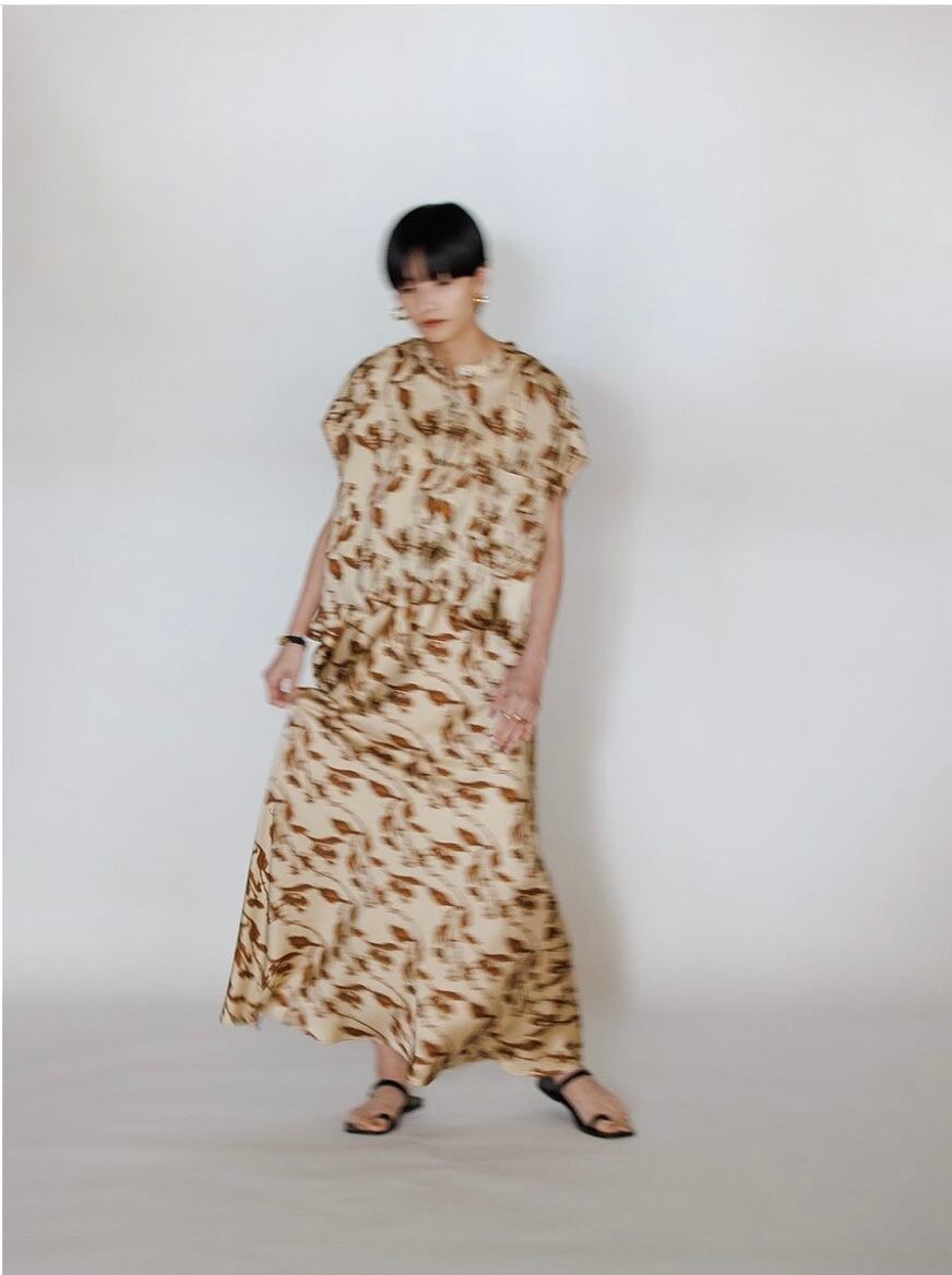バイアスに裁断することで生まれる独特の落ち感と裾で揺れるきれいなシルエットがポイントになります。