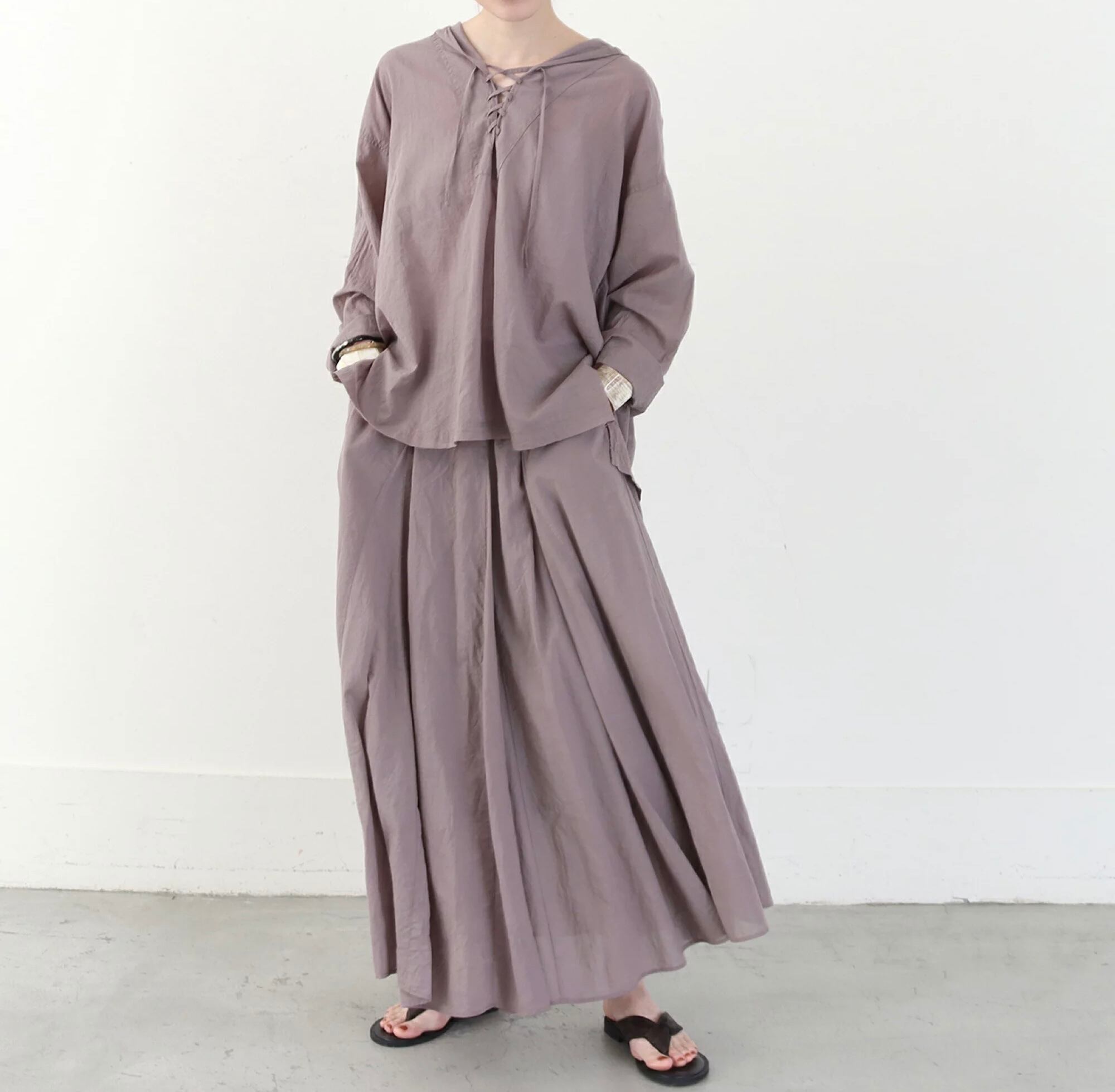 背ヨークからギャザーを施してふんわりと身体のラインを拾わないシルエットに。
