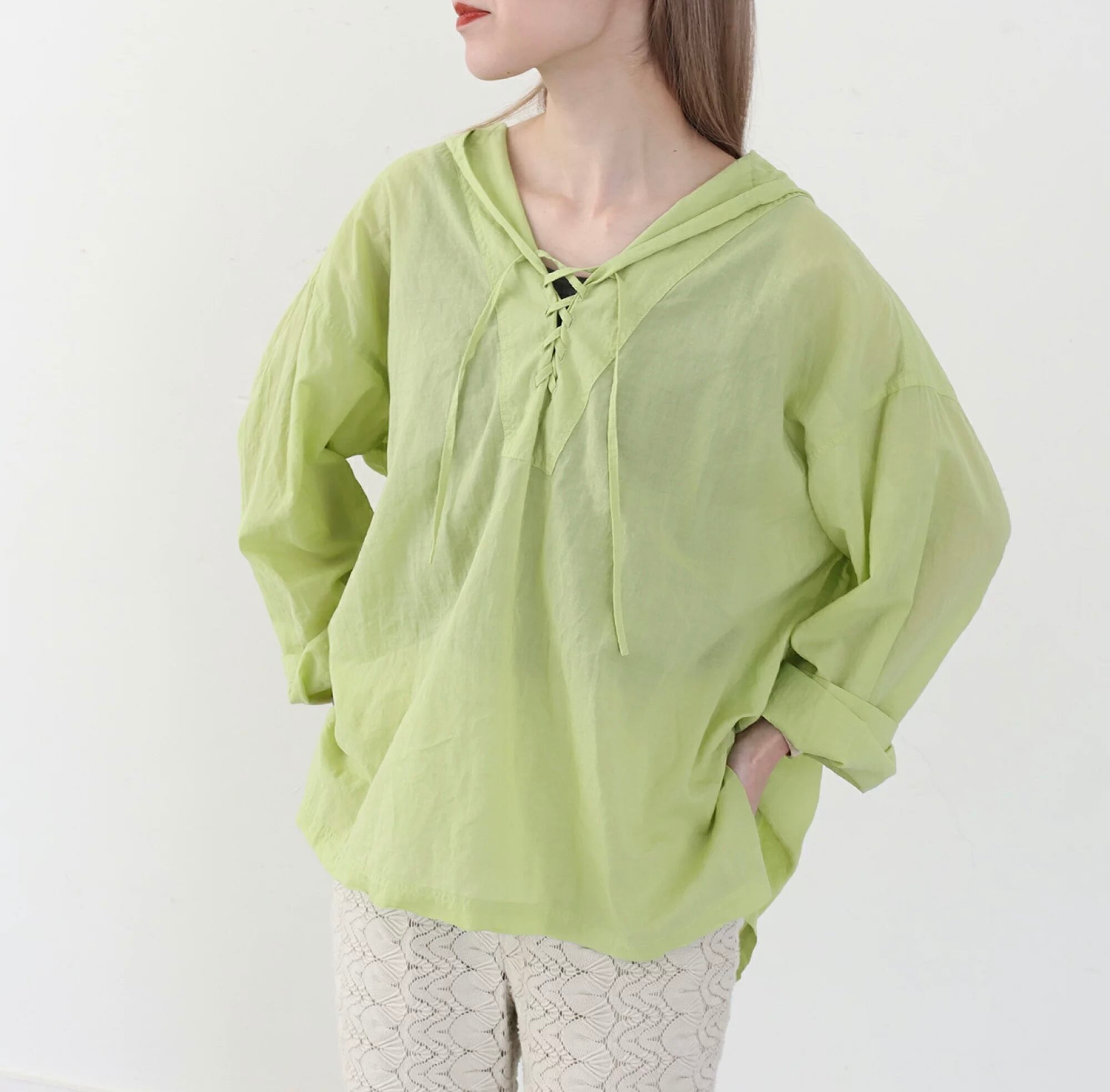 紐は結ばずタラっと垂らしてインナーをのぞかせるのが可愛い。