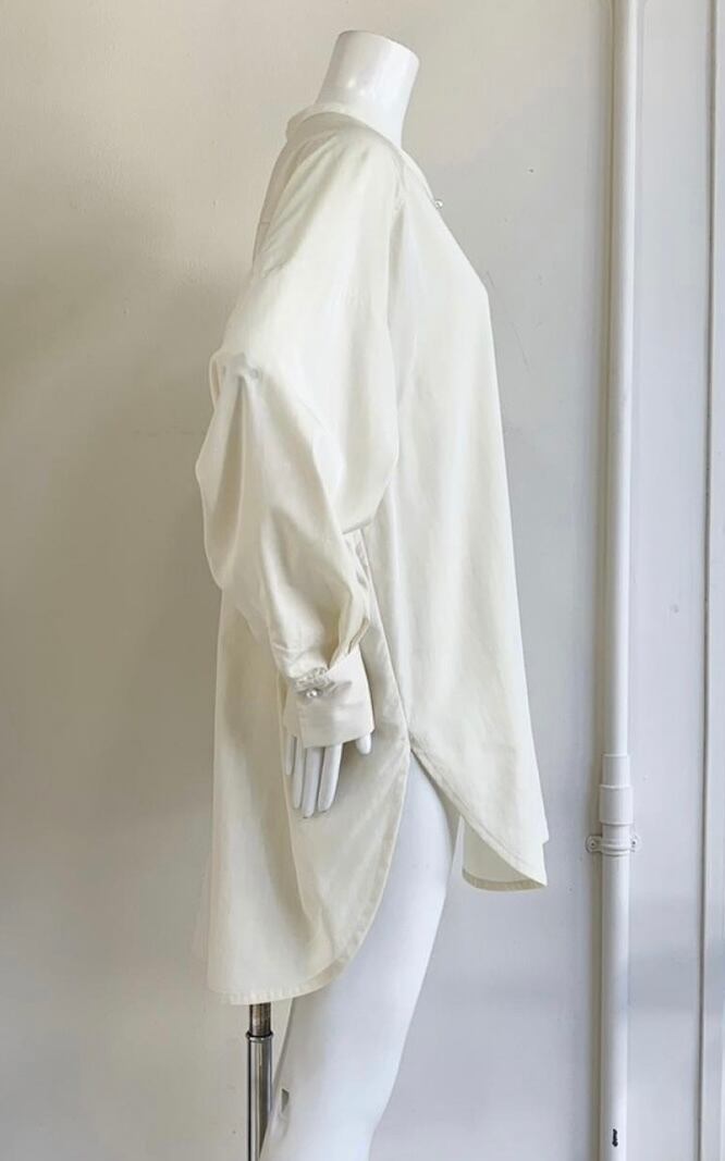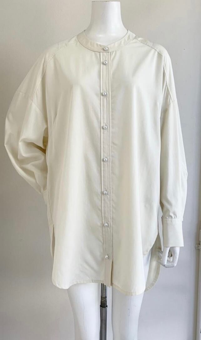 光沢がありしなやかな質感、ストンと落ちるシルエットが魅力のとろみシャツです。