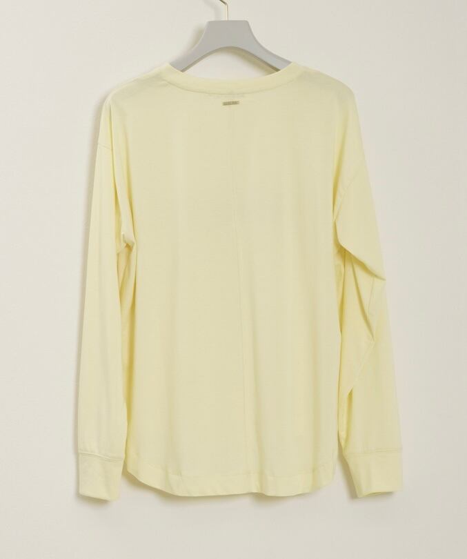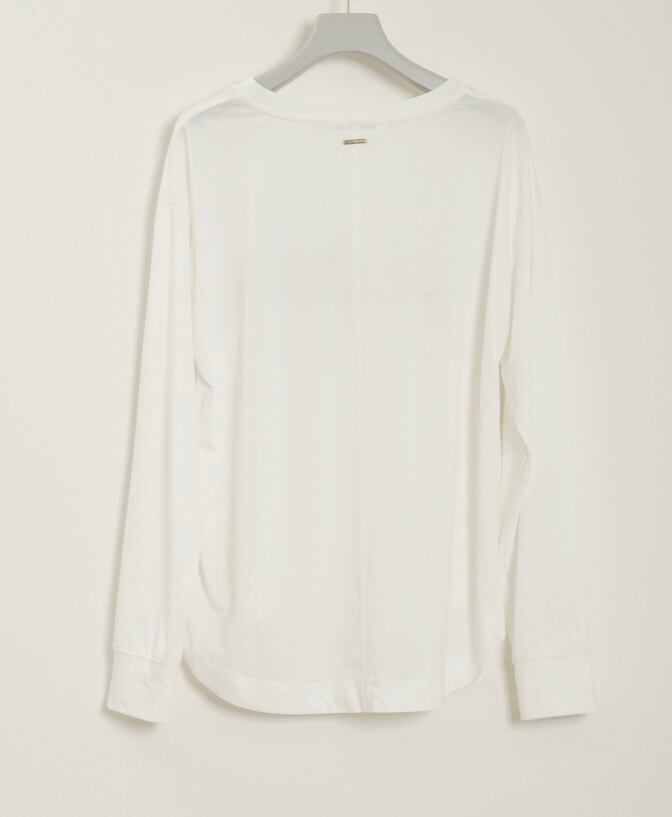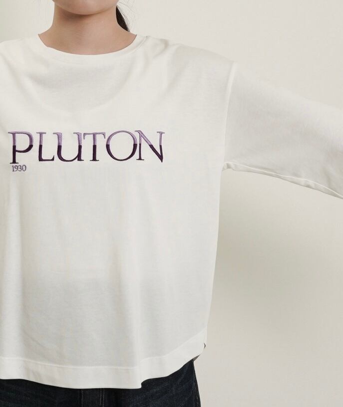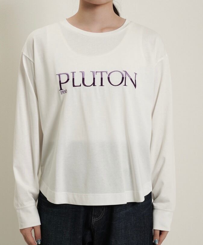 バイカラーの刺繍ロゴを施したベーシックロングTシャツ。