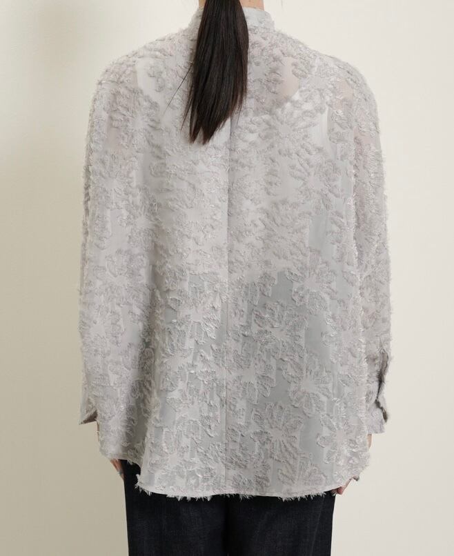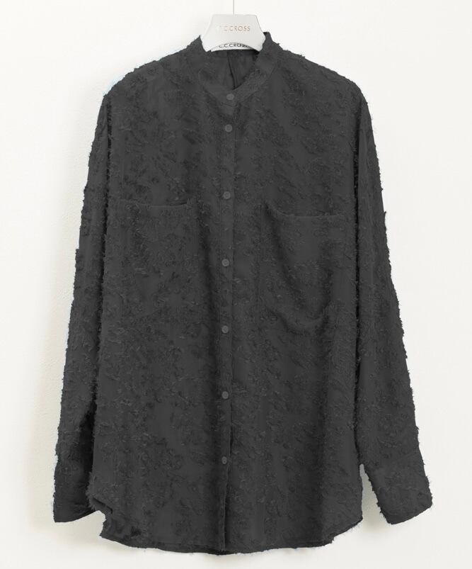 襟はバンドカラーでシンプルにし、素材が映えるようなデザインにしました。