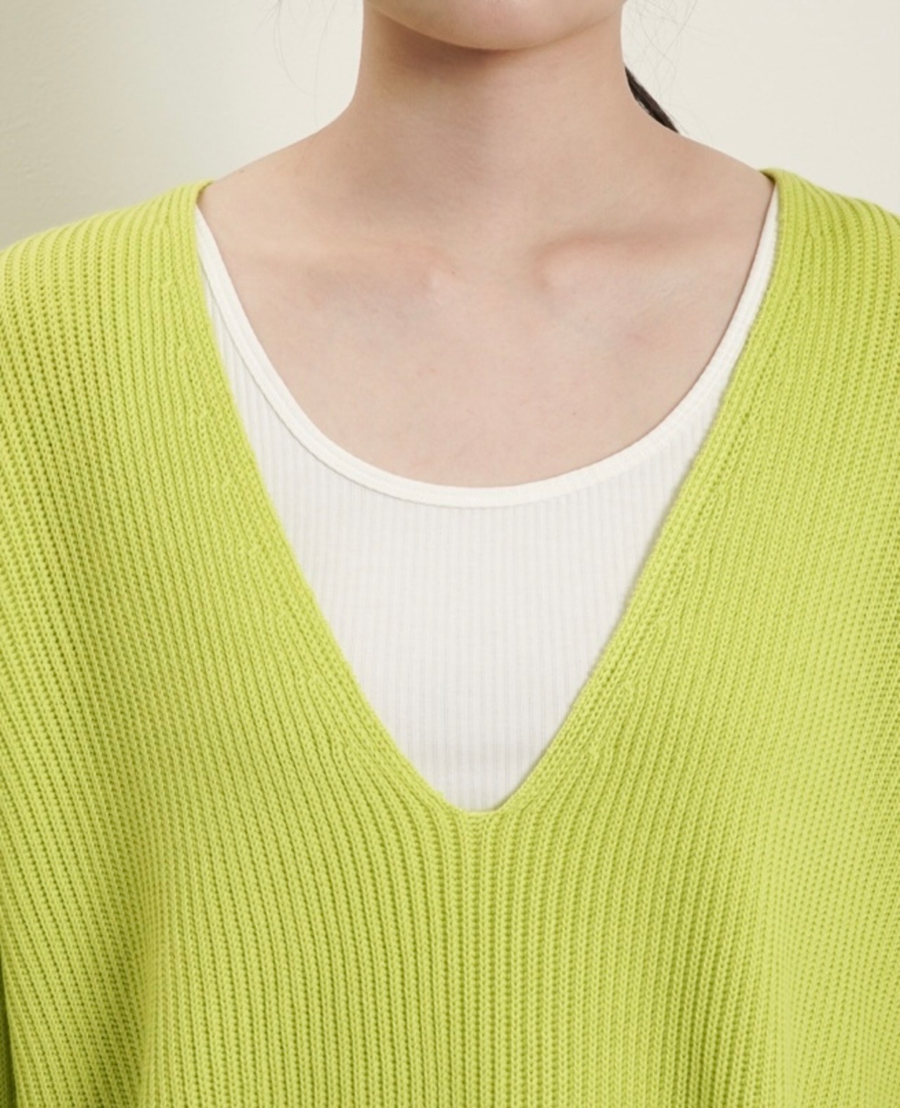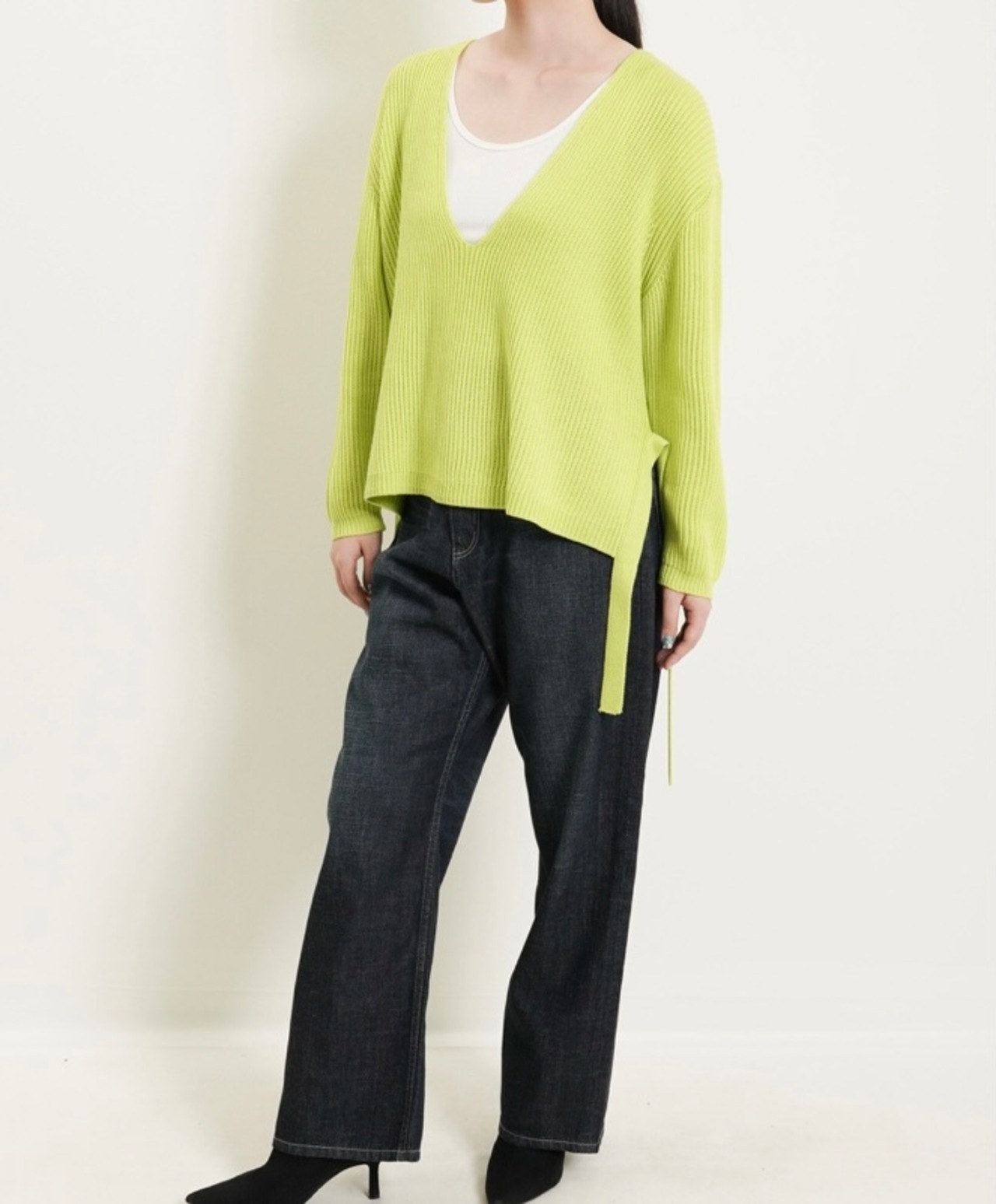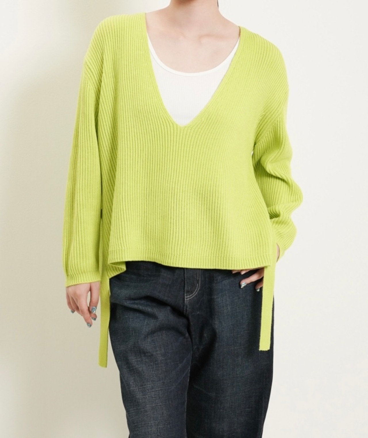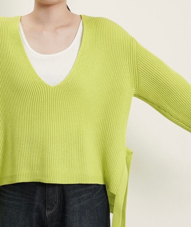 Vネックはあえて深Vラインにして、抜け感を出したデザインにしました。