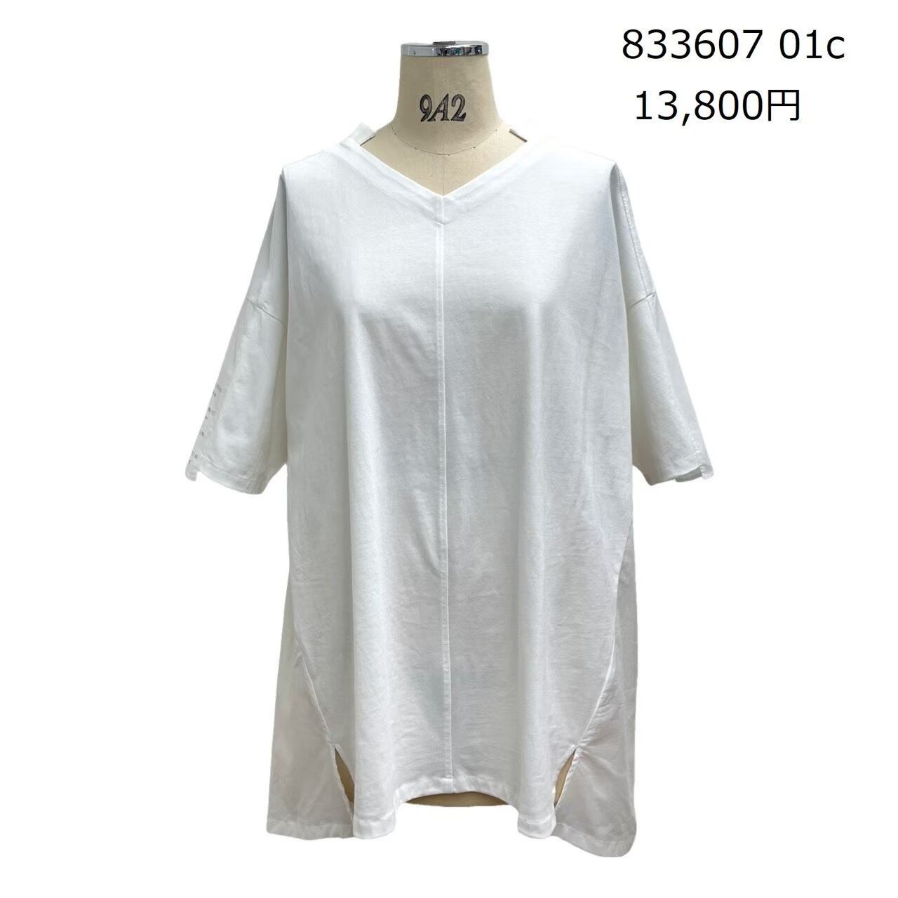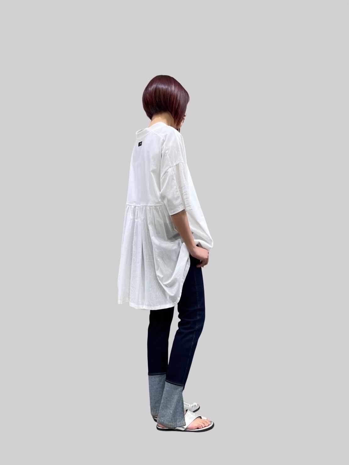 綿100%のカットソーと綿ボイルとのドッキングで、長めの丈ですが軽やかに着用して頂けます◎