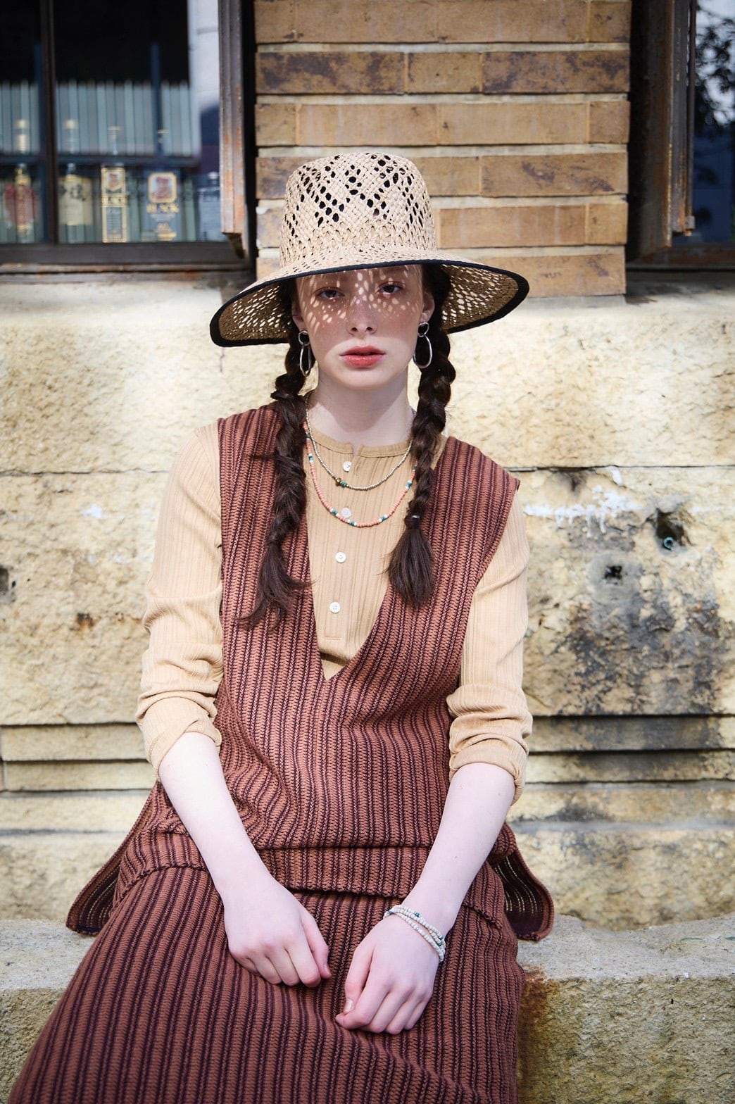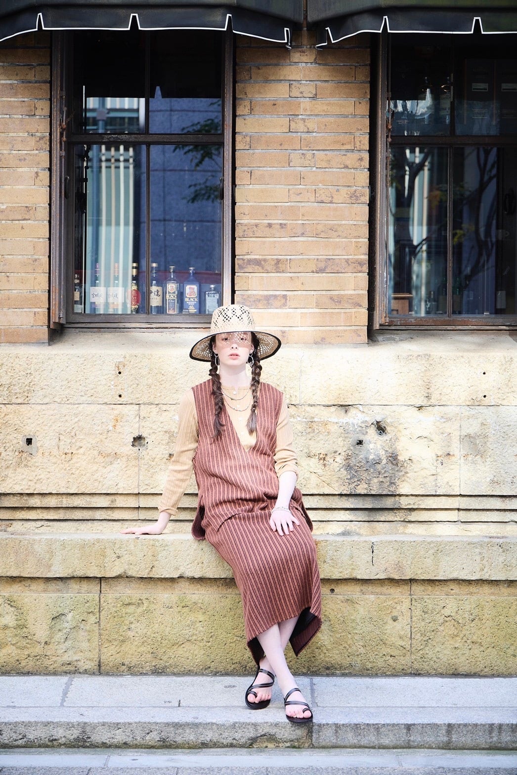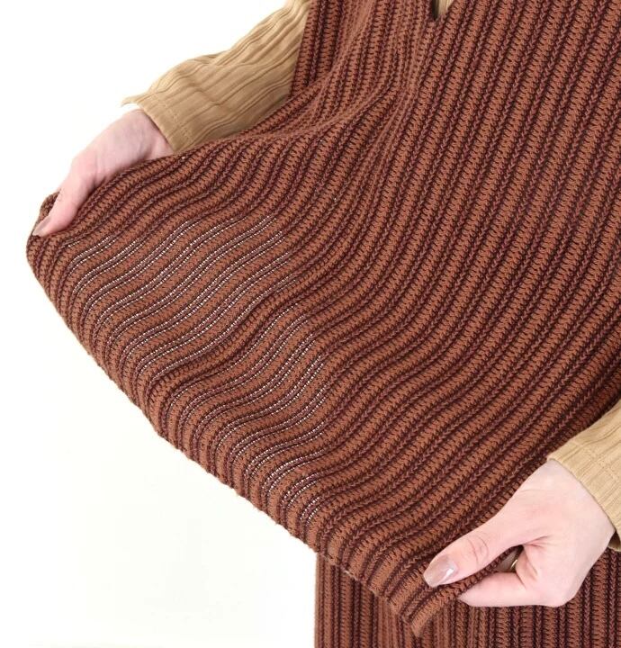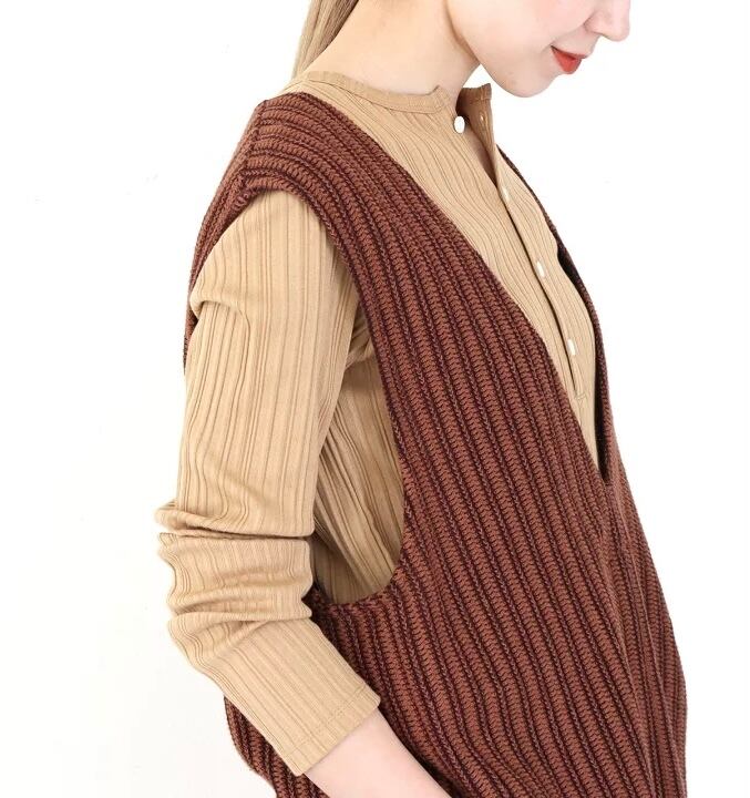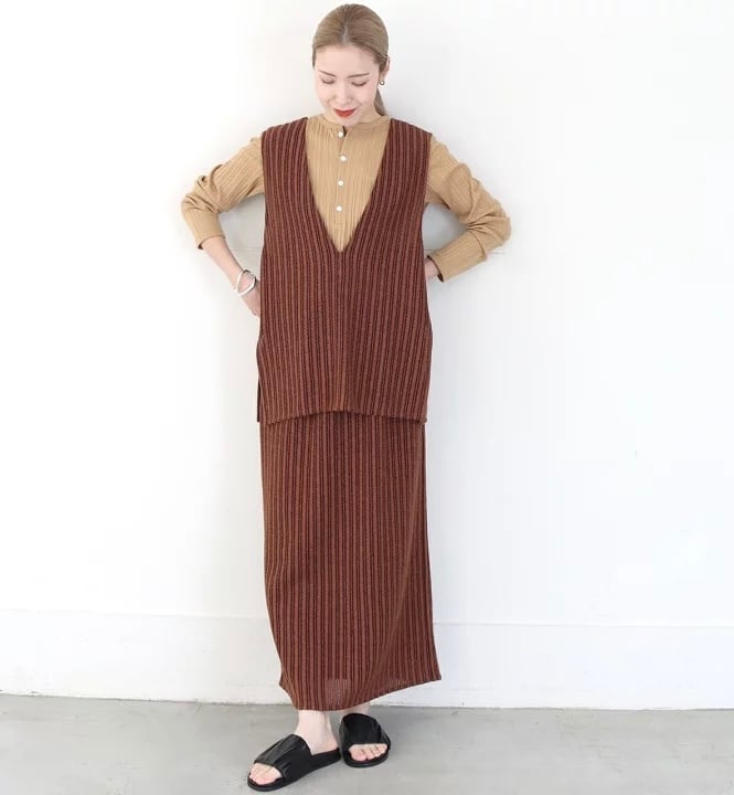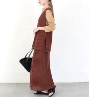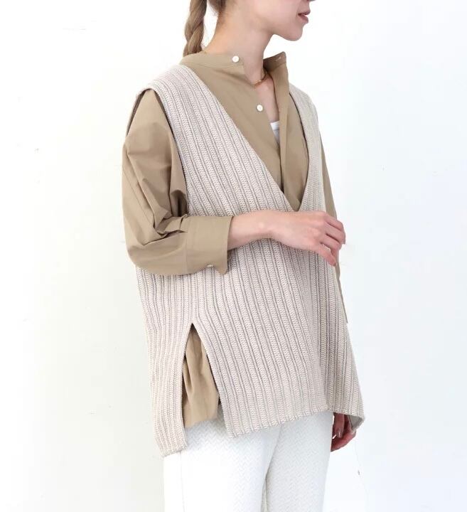 程よくざっくりとした素材のベストはコーデが重たくならずレイヤードコーデを楽しめます。