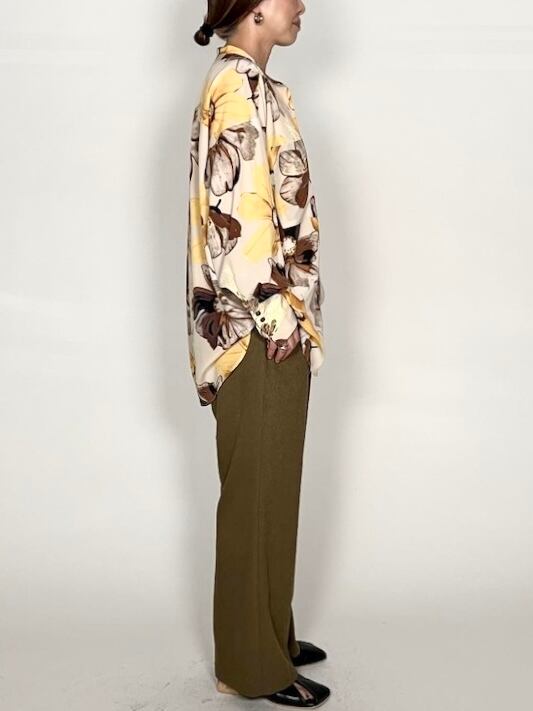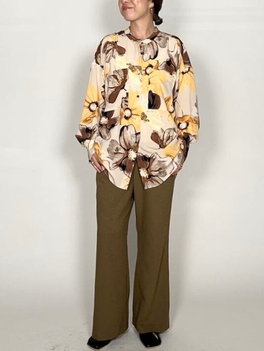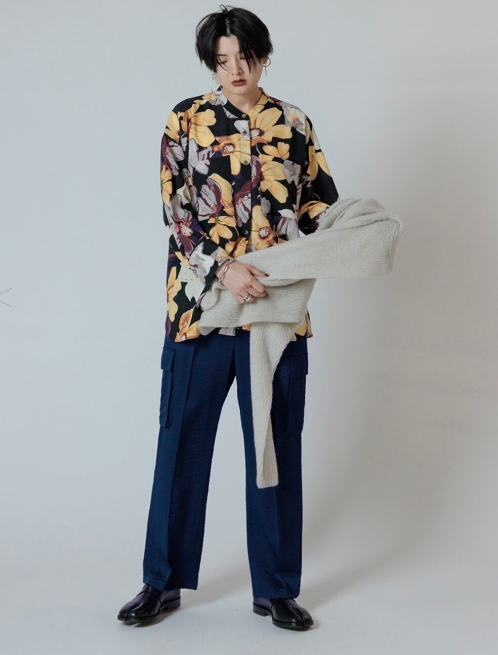 大柄のフラワープリントを使用した、バンドカラーシャツです。