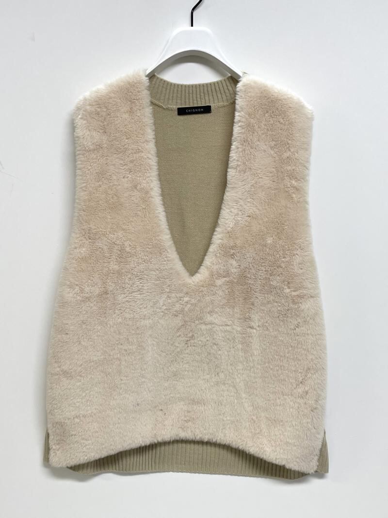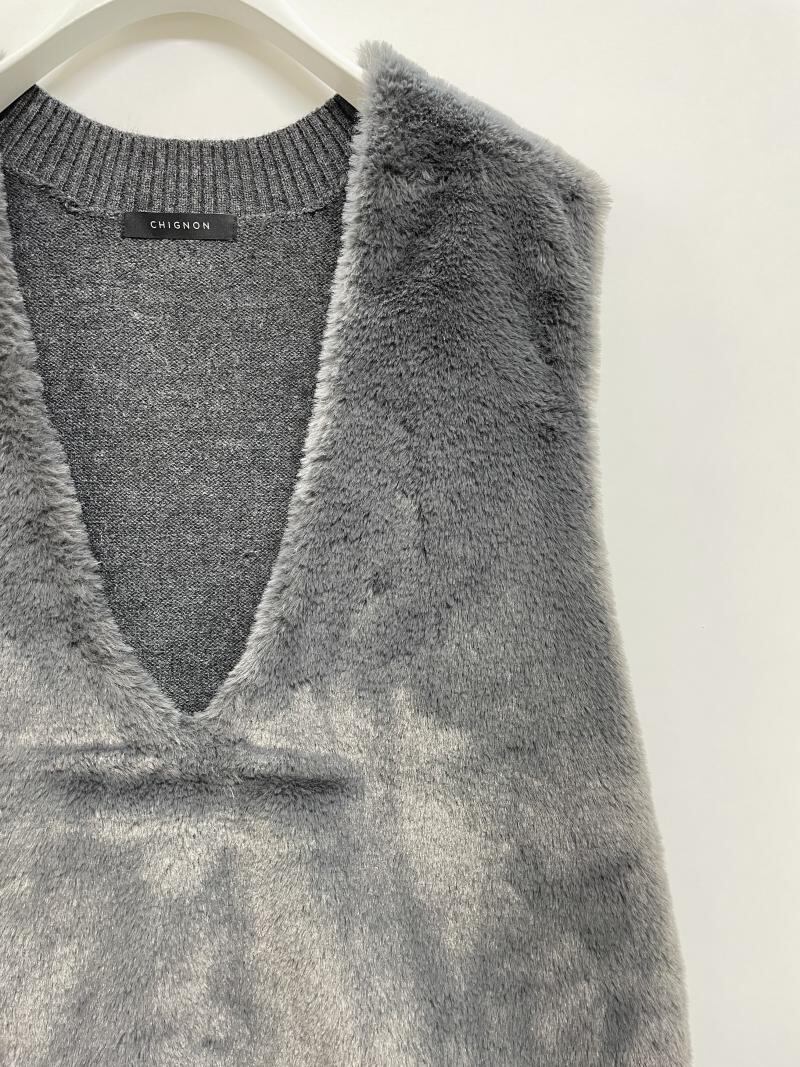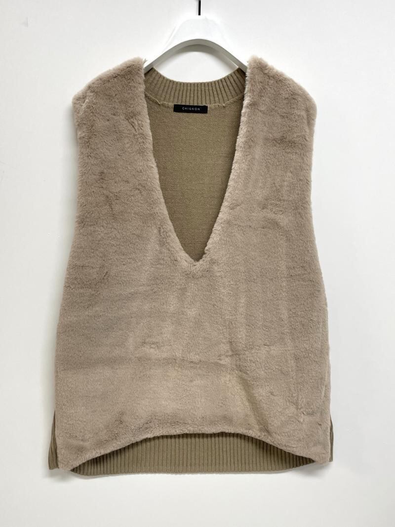 今季らしいファーとのドッキングニット。