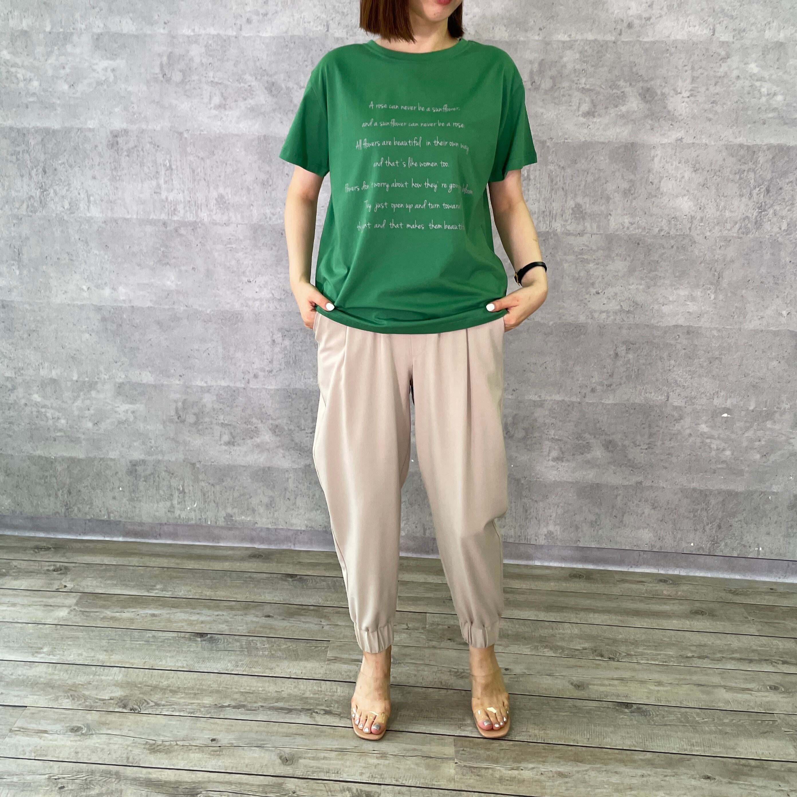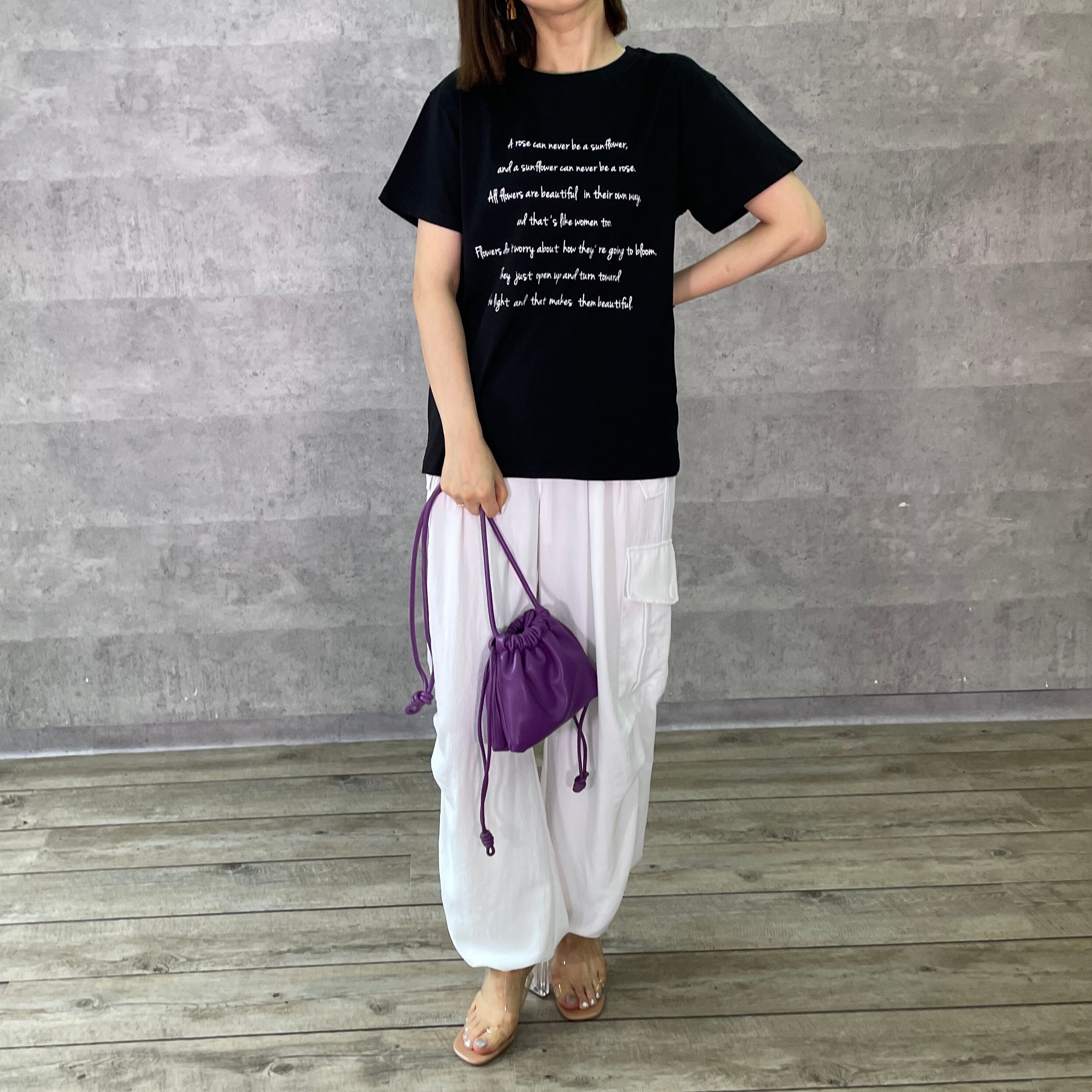 すっきりとしたシルエットで、一枚でも羽織のインナーにも使いやすく、着回しの効くトップスです。