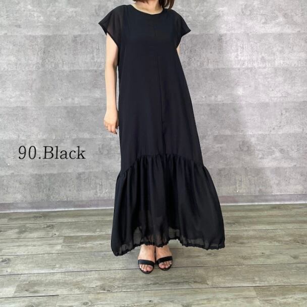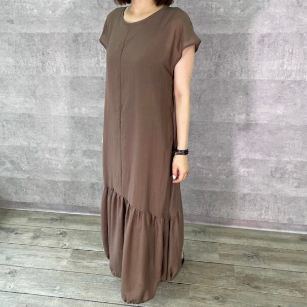 オシャレなデザインが魅力の切り替えロングワンピース。